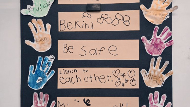 Together, we worked on building our Class Promise. We brainstormed ideas about how we can take care of ourselves, each other, and our classroom. Suggestions included being kind, listening to friends, sharing, and helping when someone needs help. We wrote these ideas down and turned them into promises that everyone signed with their name and handprint.