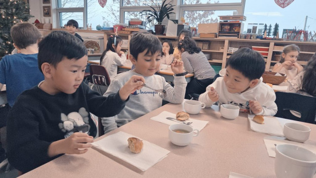 One of the highlights was making Stone Soup with Ms. Steverding’s class. The children peeled, chopped, cooked, and then shared a meal together to celebrate teamwork and community. They also enjoyed open play time with friends, building social skills, imagination, and cooperation through play. We wrapped up the month with cozy moments like movie day, a special pancake breakfast and lots of open play. December was short but sweet, and full of memories we’ll carry into the new year!