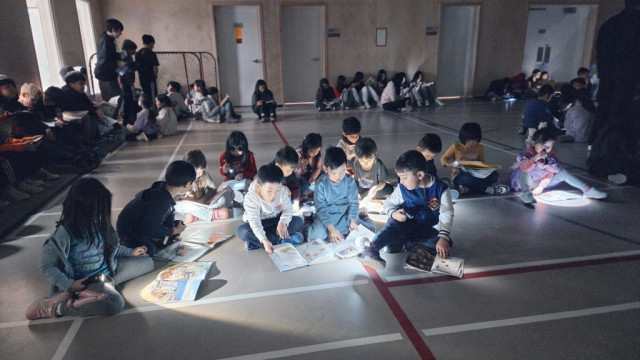 This month we also celebrated Literacy Day with our school community. We attended a fun and energetic assembly, where each child brought a knowledge card to the gym. They had a special moment to share the fact on their card with a friend sitting nearby. Our class focused on animals that hibernate in the winter. After lunch, we had a lot of fun reading in the dark. It was a huge hit!