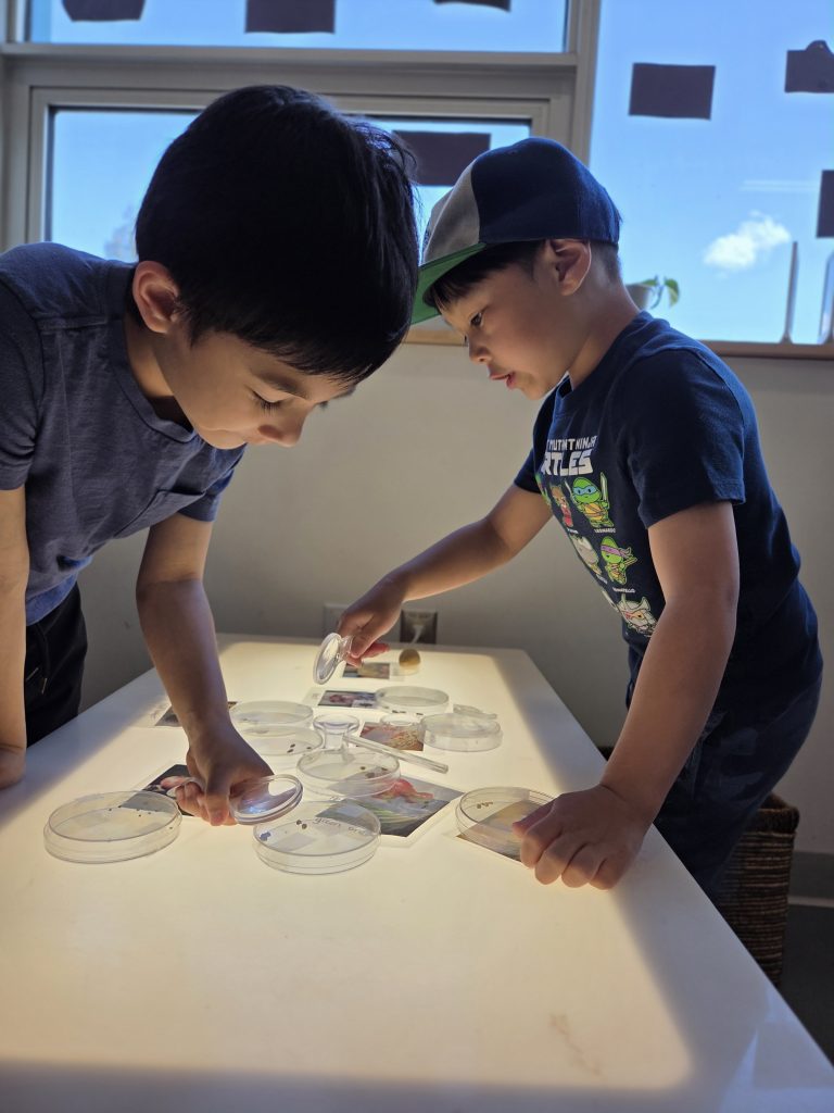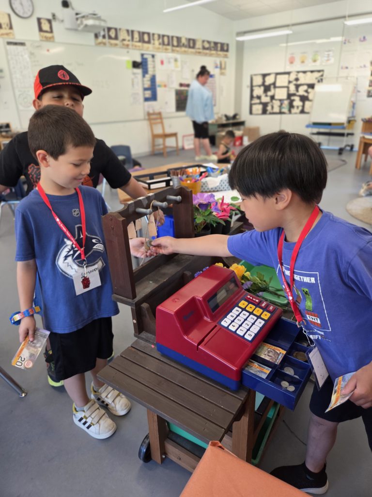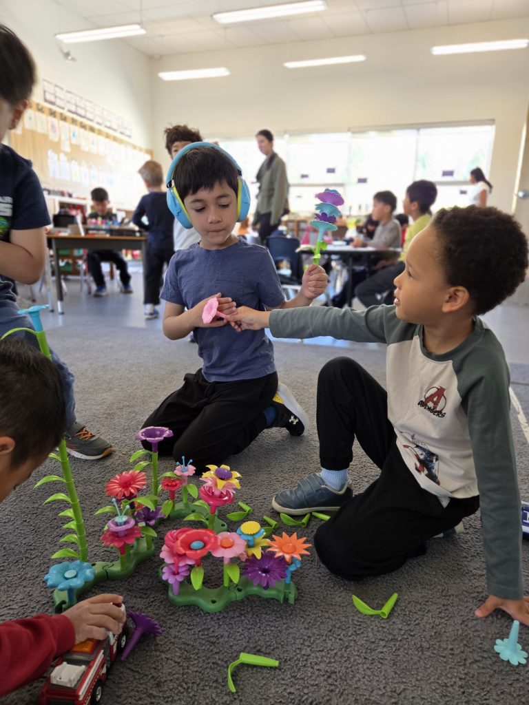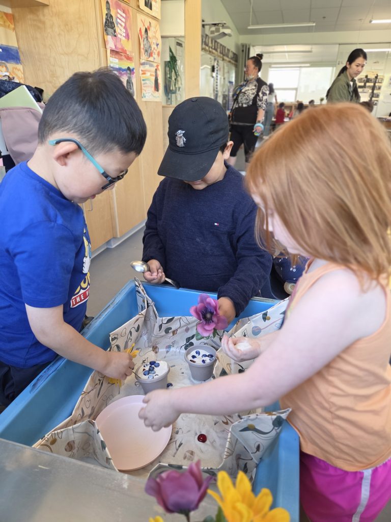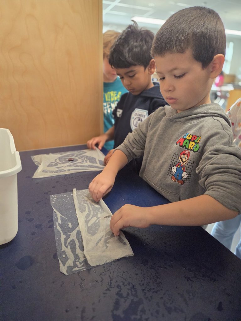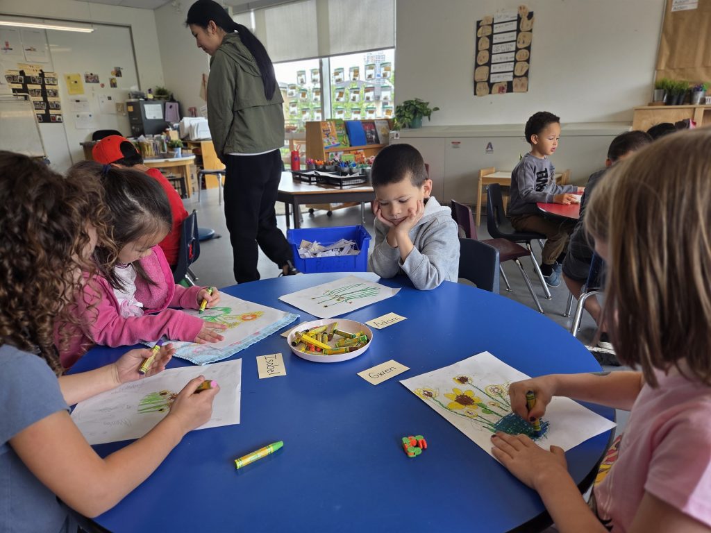 Division 12 learning and exploring hands-on activities in literacy, math, and art.
