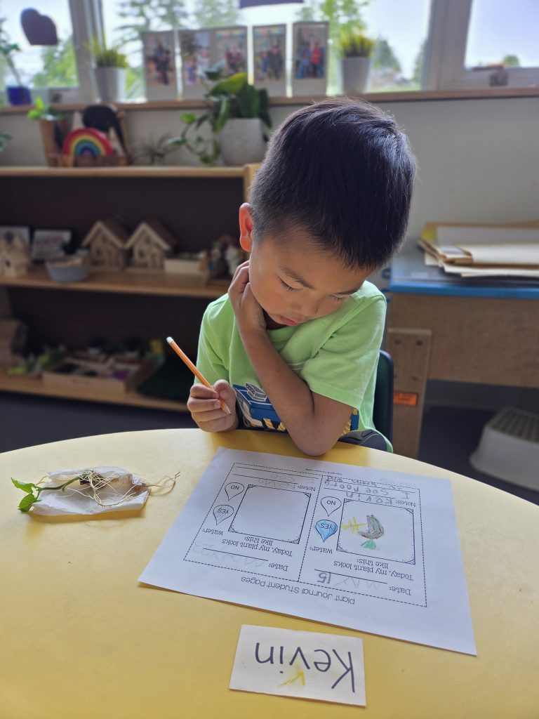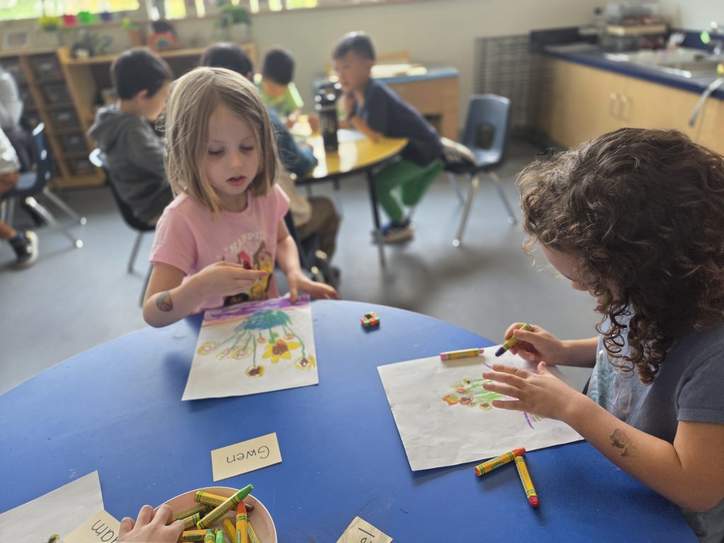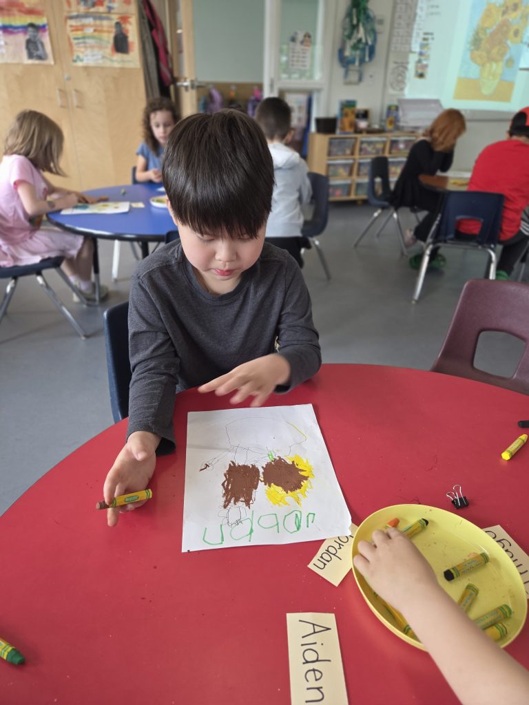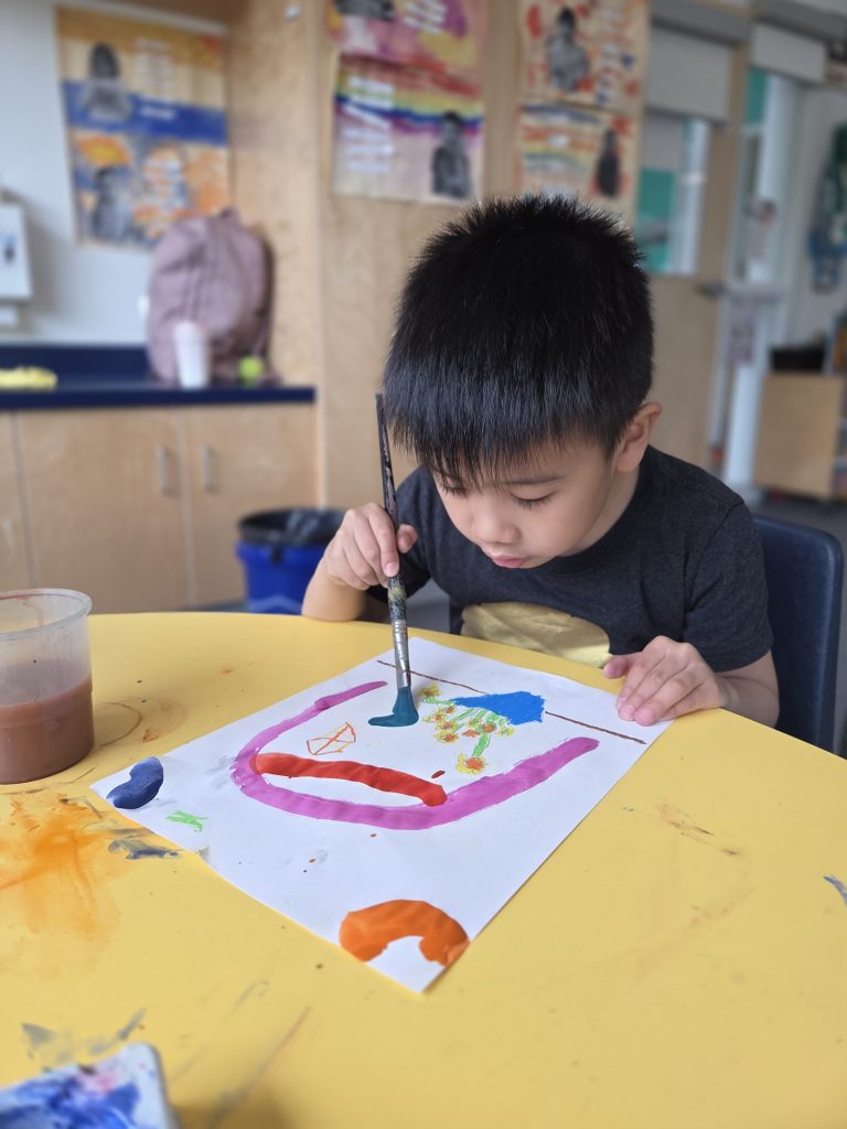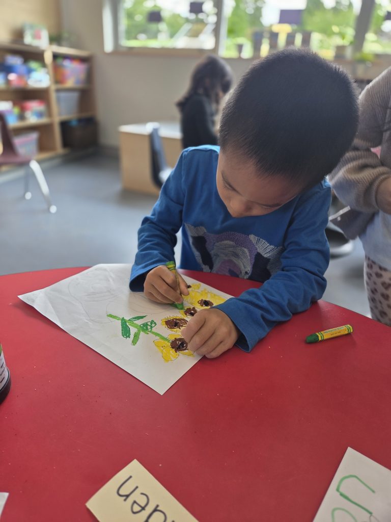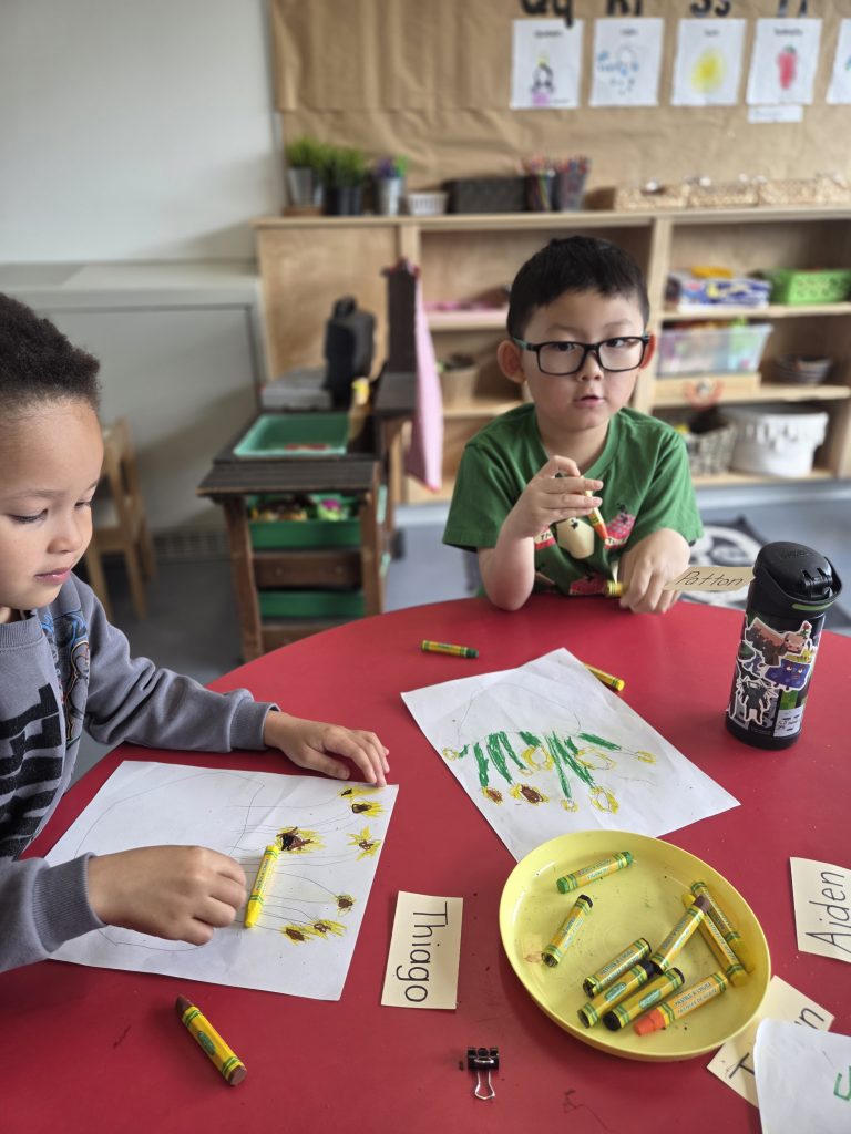 Our young artists explored self-expression! They looked closely at their reflections in mirrors to draw detailed self-portraits, noticing the unique shapes and features that make them special.