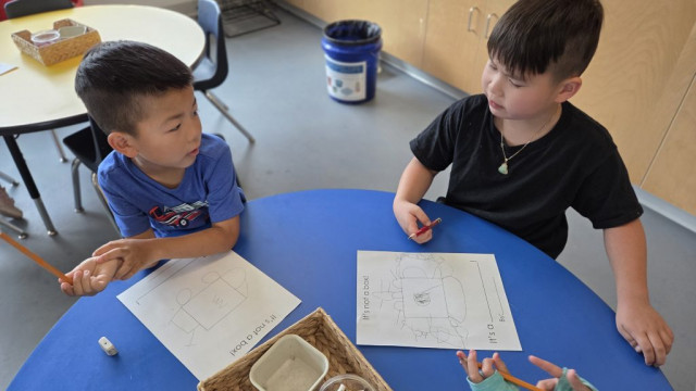 Our young artists explored self-expression! They looked closely at their reflections in mirrors to draw detailed self-portraits, noticing the unique shapes and features that make them special.