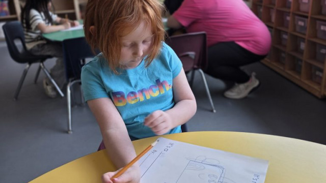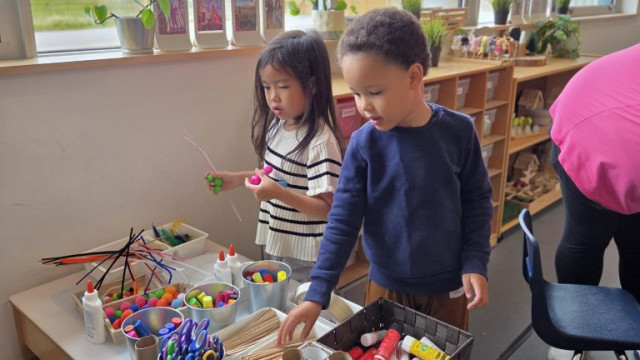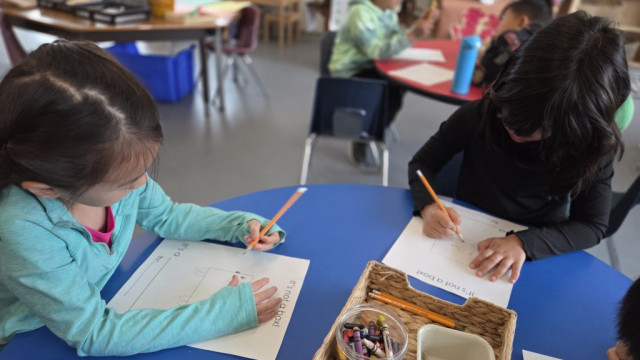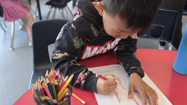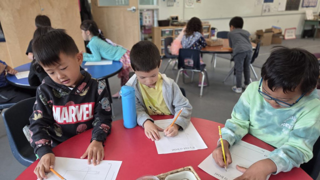 Division 12 learning and exploring hands-on activities in literacy, math, and art.