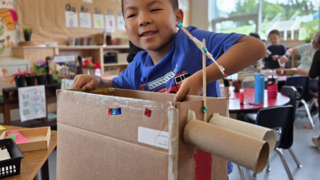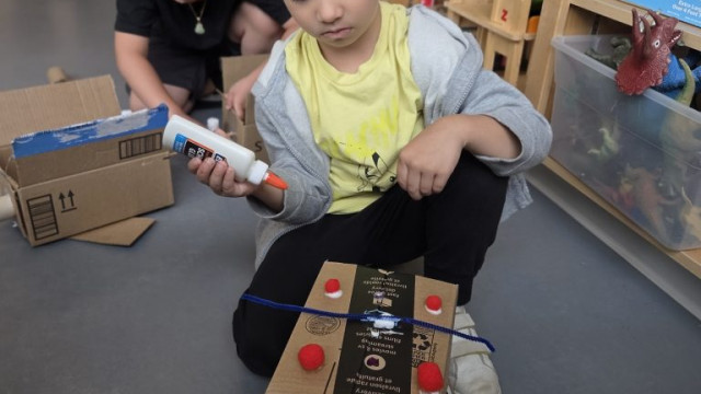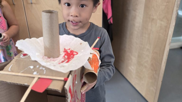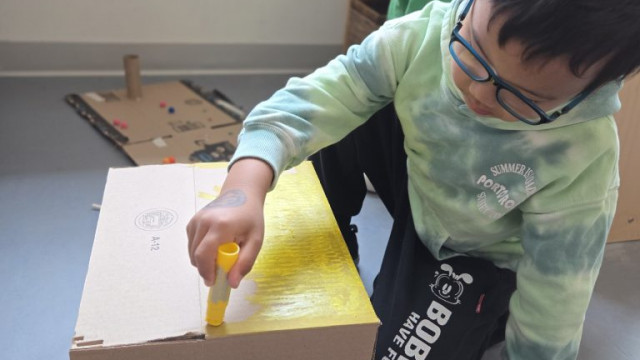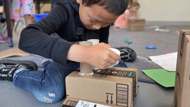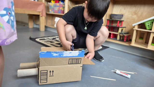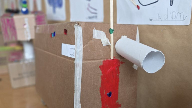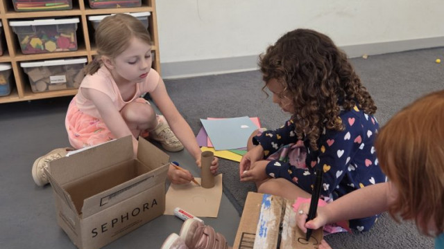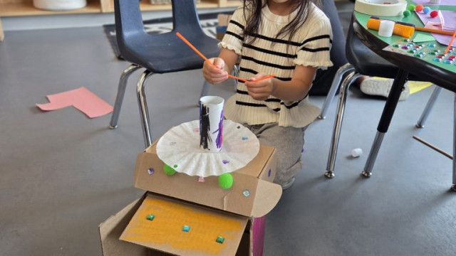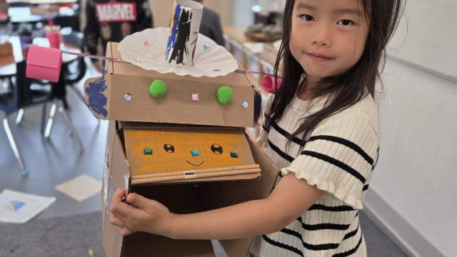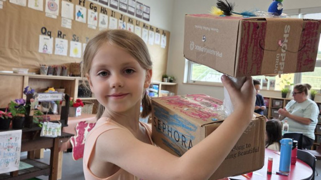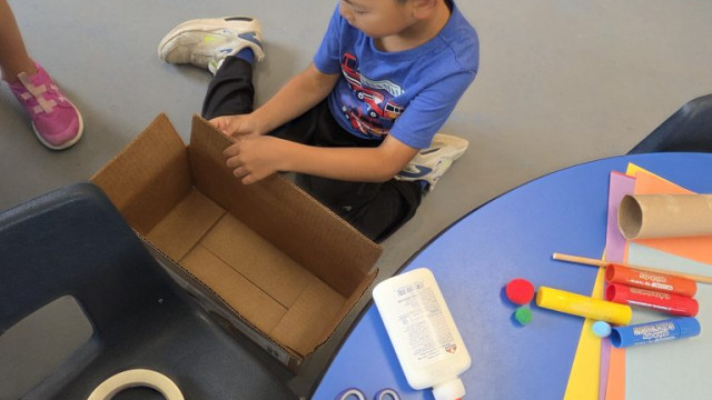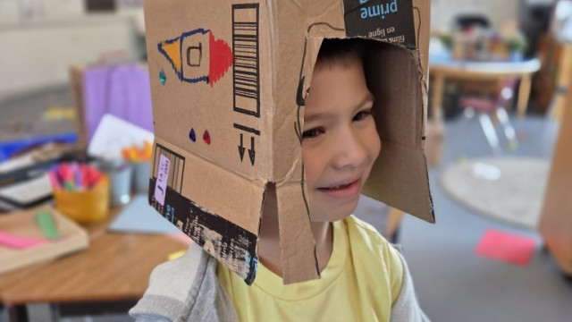 Inspired by the story It’s Not a Box, our class transformed ordinary cardboard boxes into extraordinary creations! We used our imaginations to transform plain cardboard boxes into rockets, cars, animals, homes, and so much more. With just a little creativity, markers, paint, and tape, each student brought their own ideas to life. This activity sparked creative thinking and problem-solving—and most importantly, lots of fun!