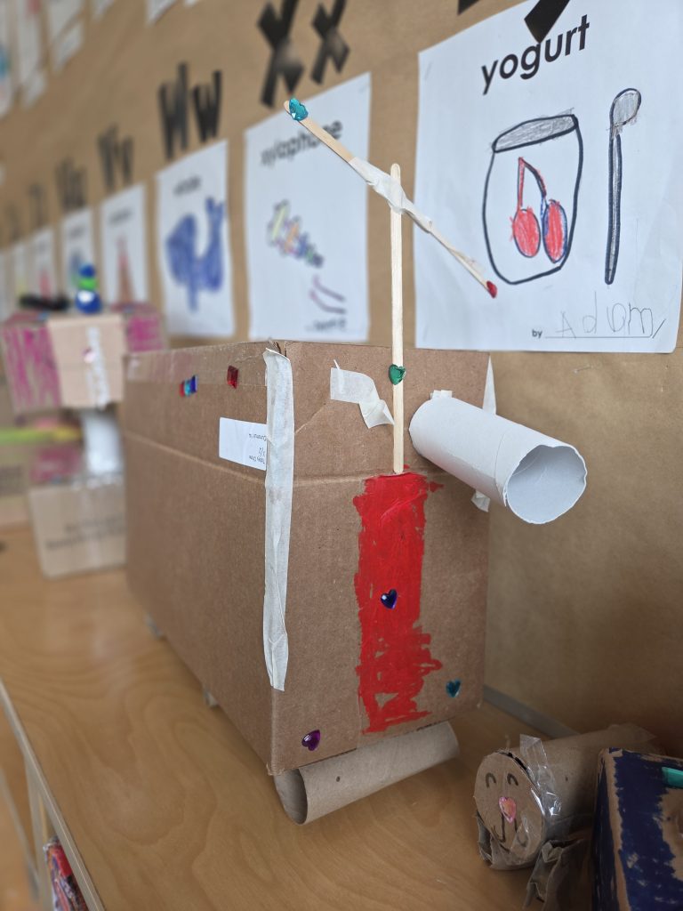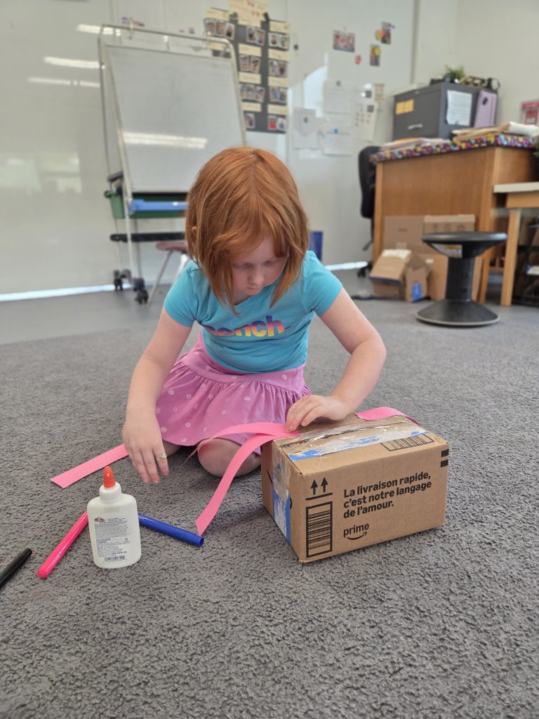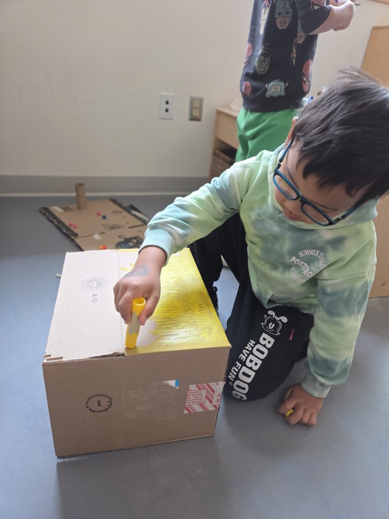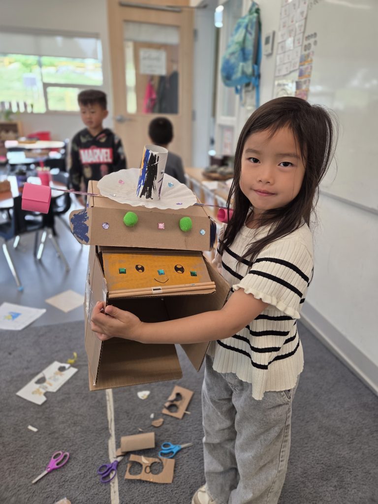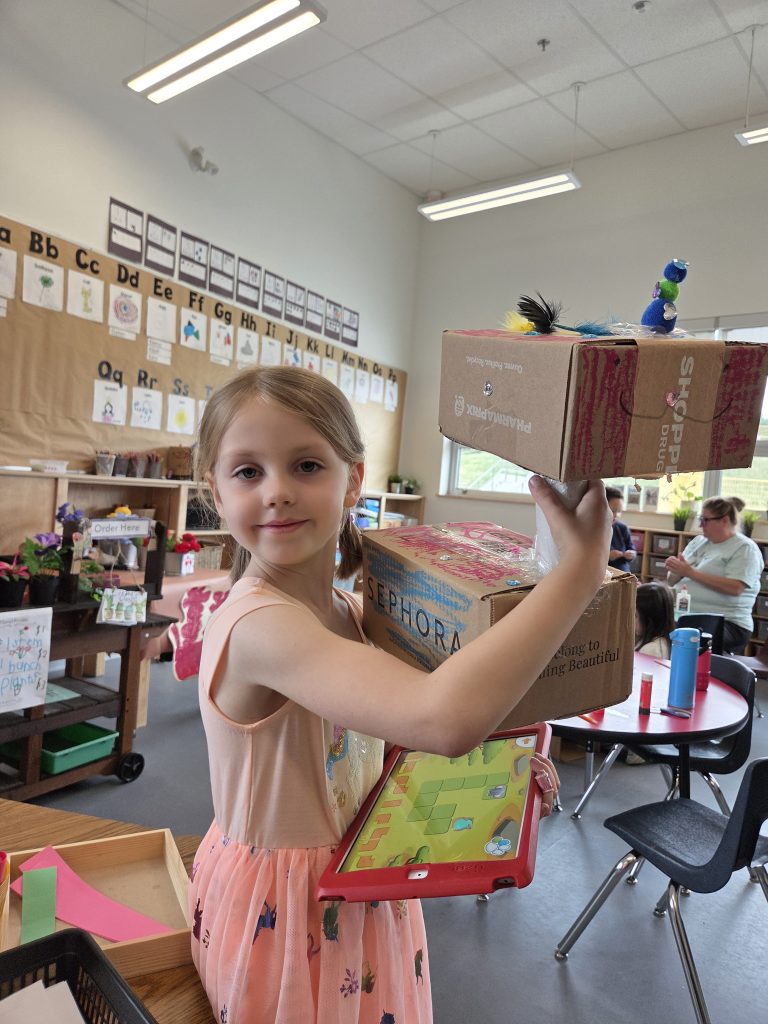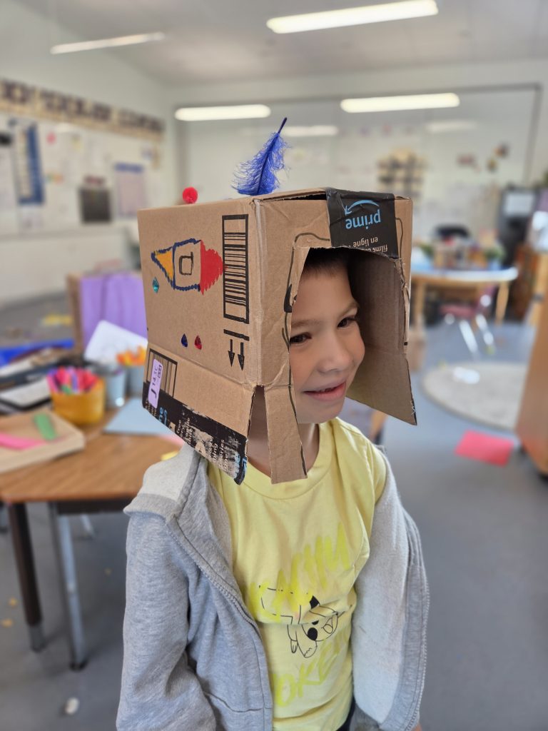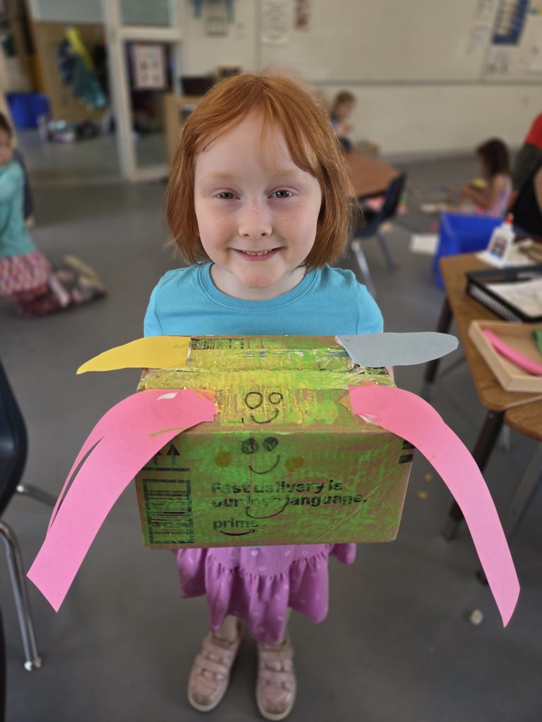 Inspired by the story It’s Not a Box, our class transformed ordinary cardboard boxes into extraordinary creations! We used our imaginations to transform plain cardboard boxes into rockets, cars, animals, homes, and so much more. With just a little creativity, markers, paint, and tape, each student brought their own ideas to life. This activity sparked creative thinking and problem-solving—and most importantly, lots of fun!