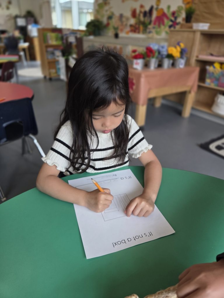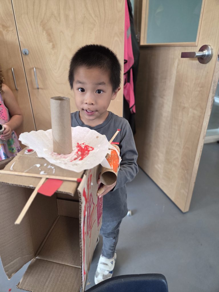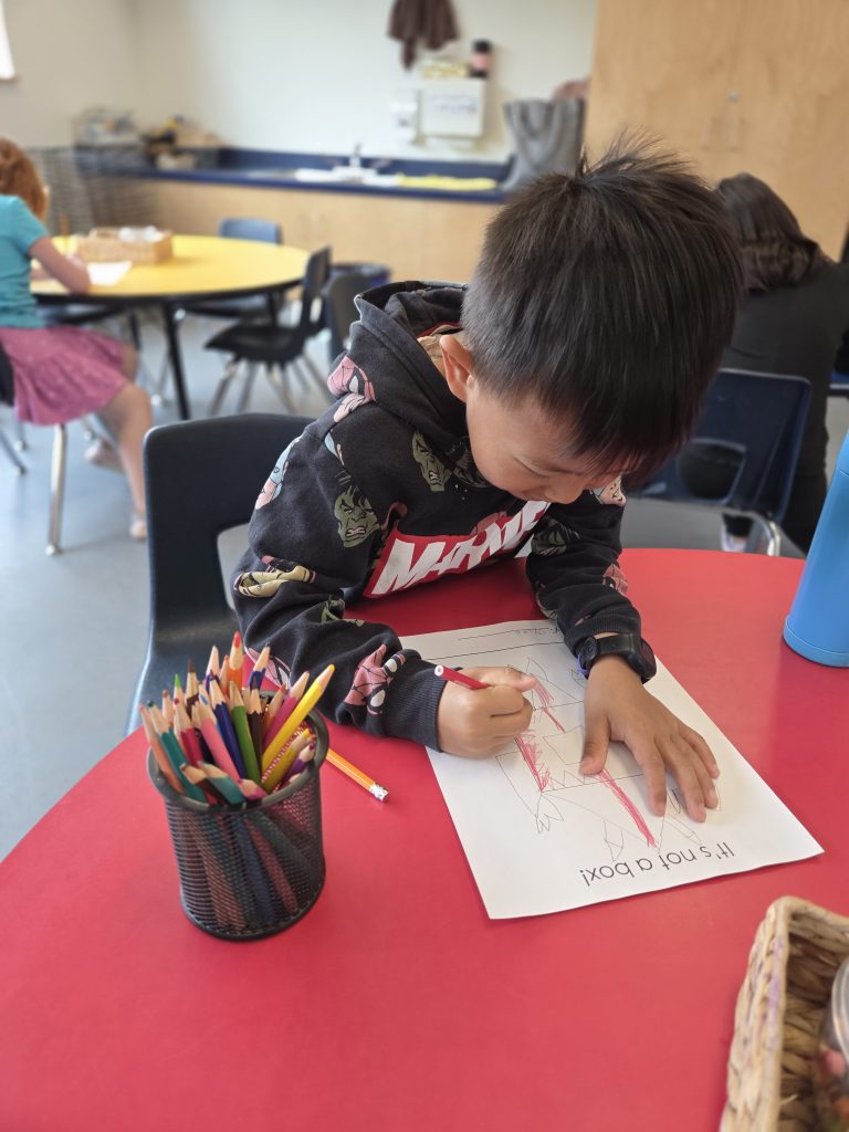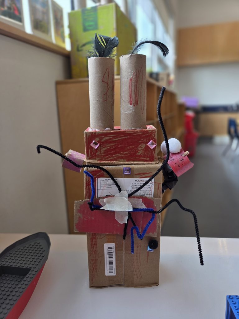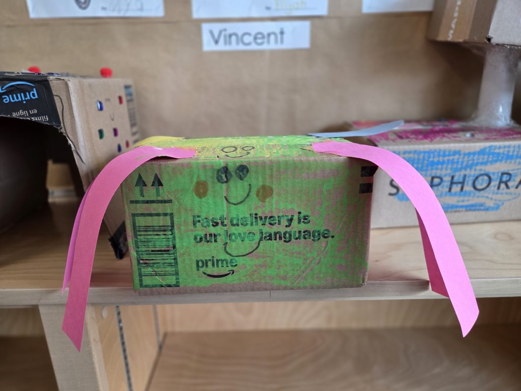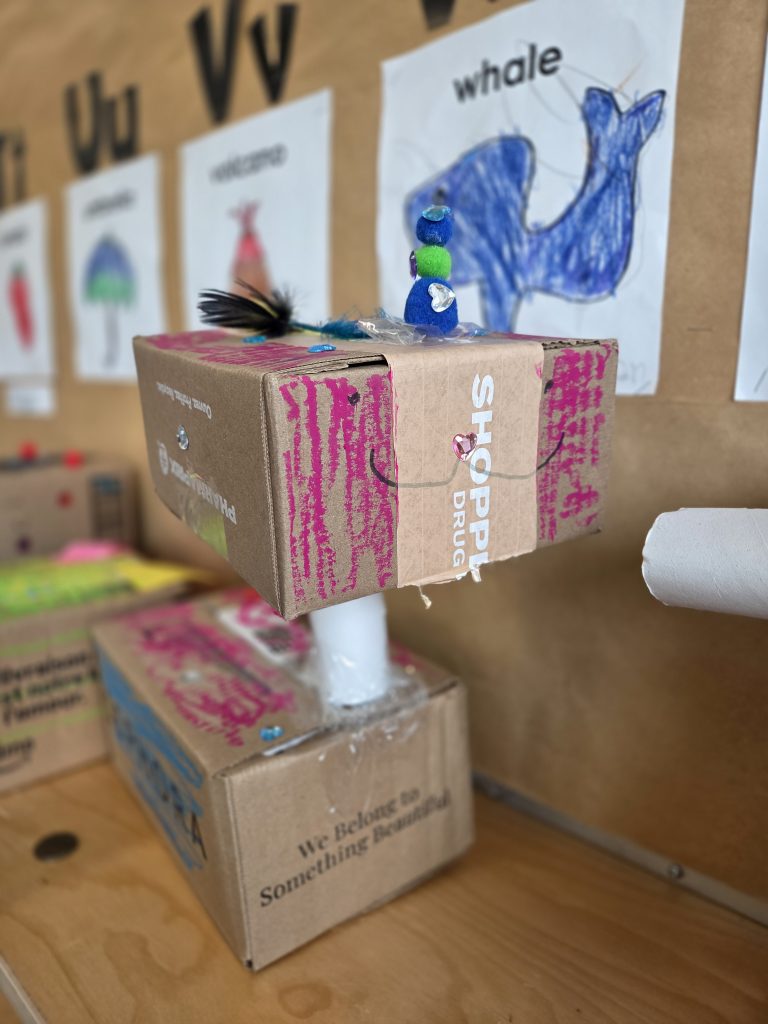 Inspired by the story It’s Not a Box, our class transformed ordinary cardboard boxes into extraordinary creations! We used our imaginations to transform plain cardboard boxes into rockets, cars, animals, homes, and so much more. With just a little creativity, markers, paint, and tape, each student brought their own ideas to life. This activity sparked creative thinking and problem-solving—and most importantly, lots of fun!
