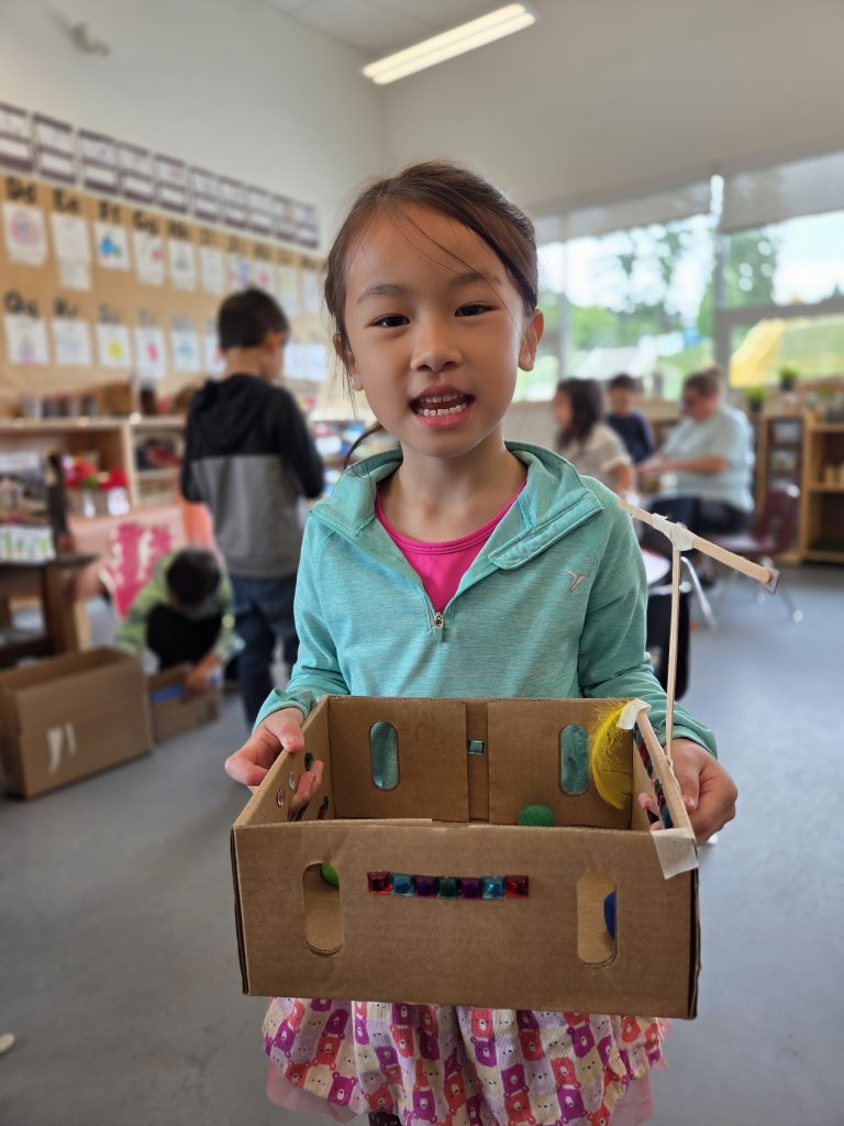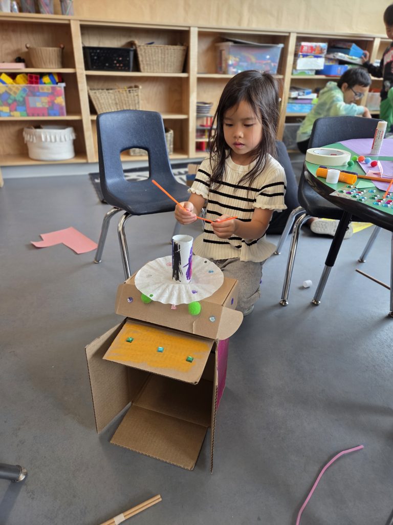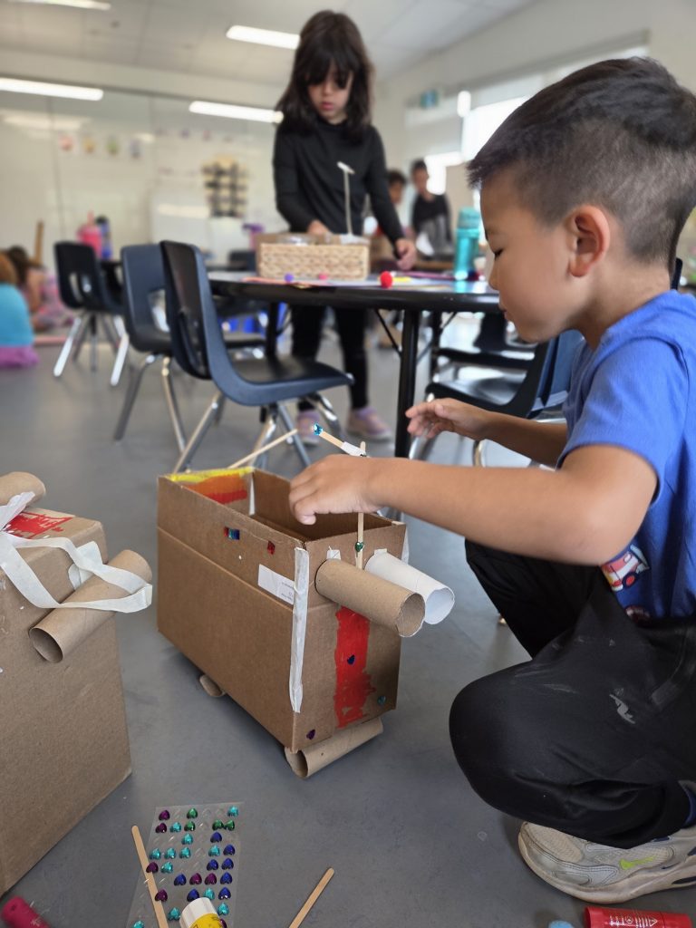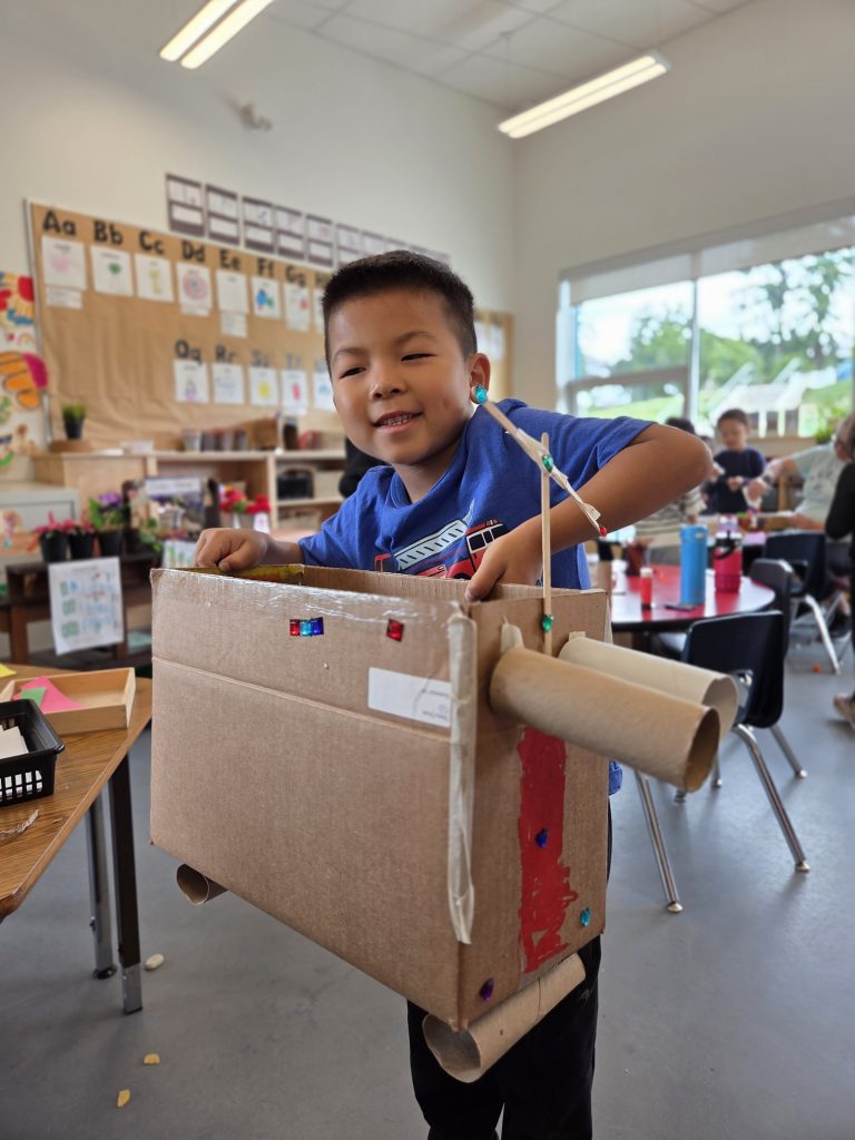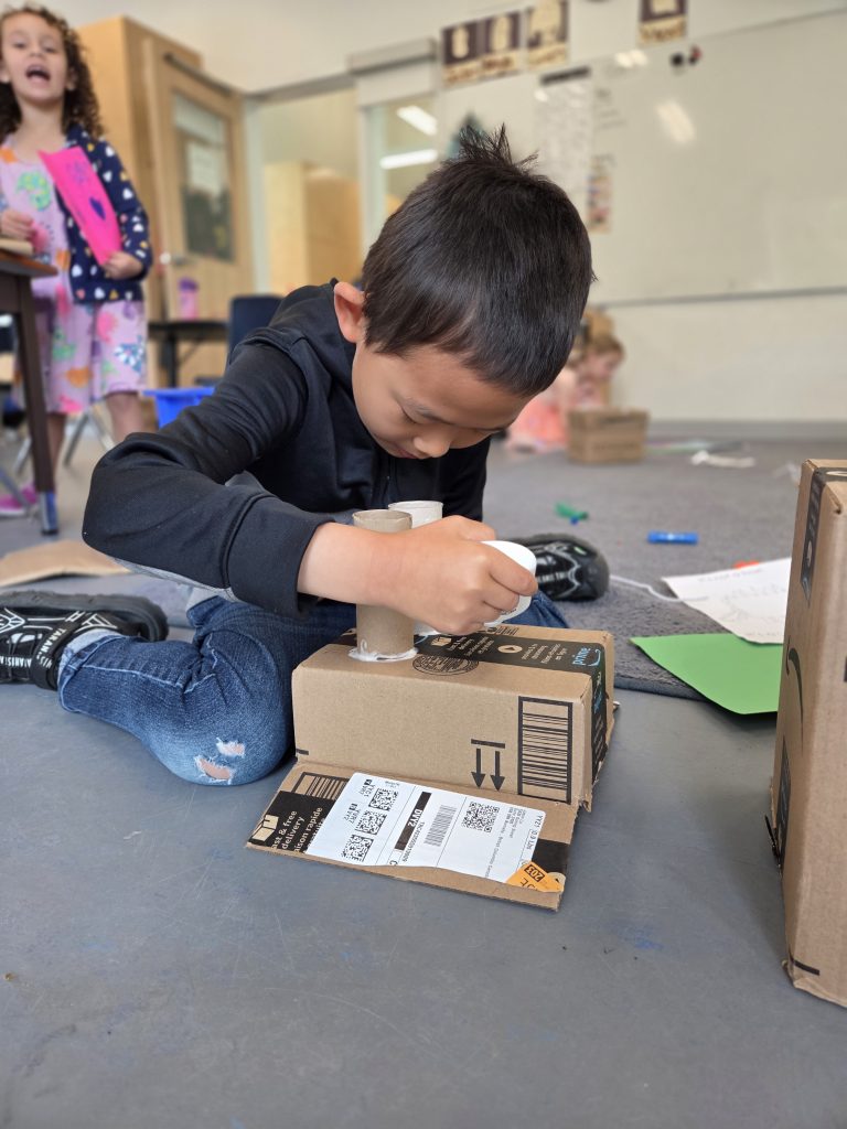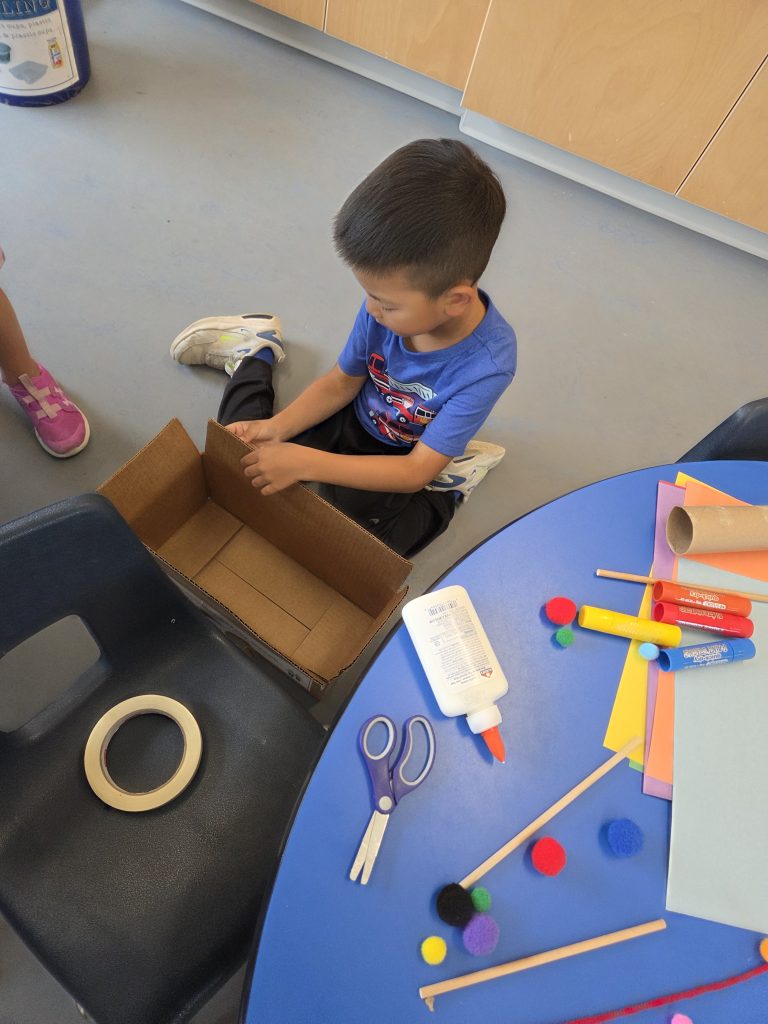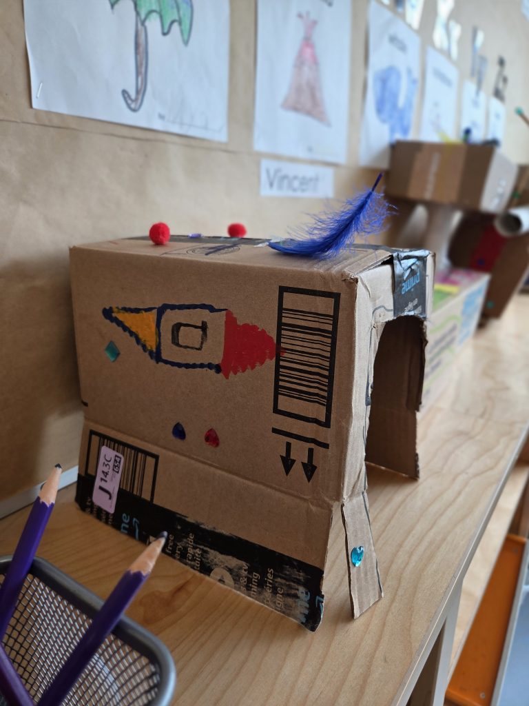 Inspired by the story It’s Not a Box, our class transformed ordinary cardboard boxes into extraordinary creations! We used our imaginations to transform plain cardboard boxes into rockets, cars, animals, homes, and so much more. With just a little creativity, markers, paint, and tape, each student brought their own ideas to life. This activity sparked creative thinking and problem-solving—and most importantly, lots of fun!