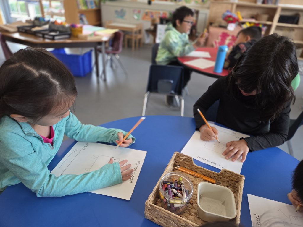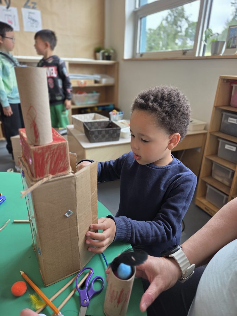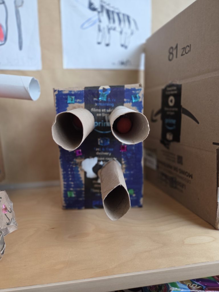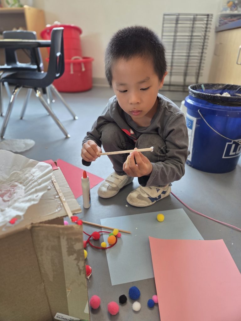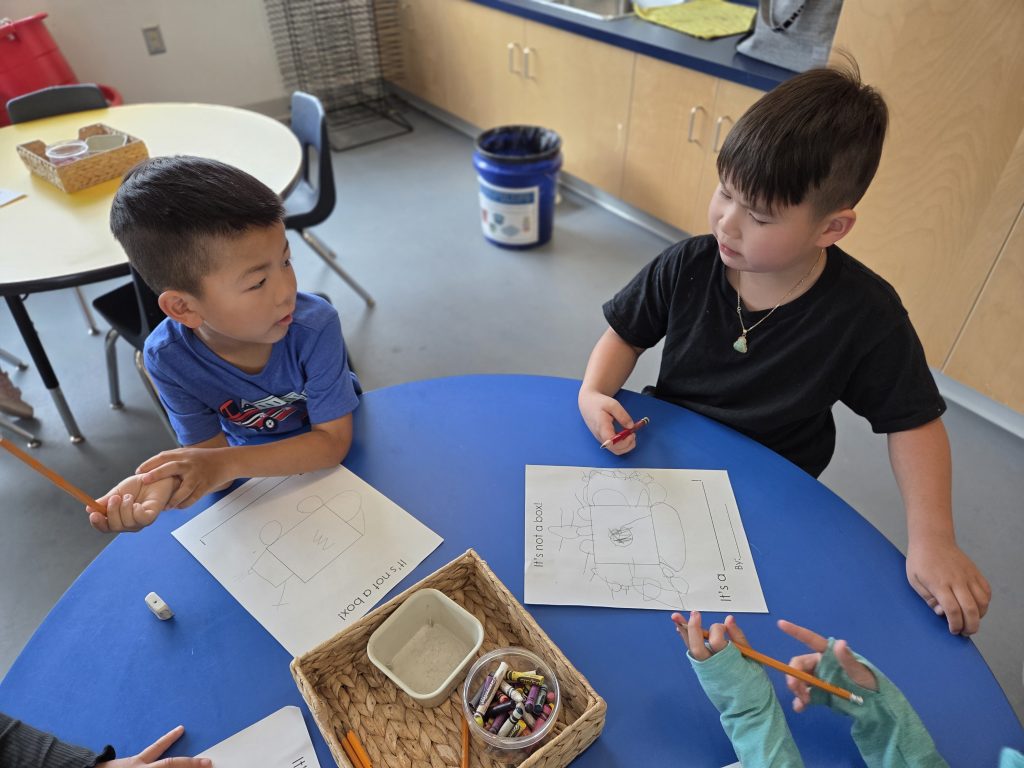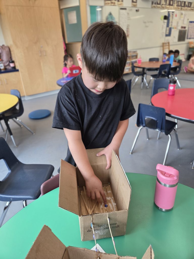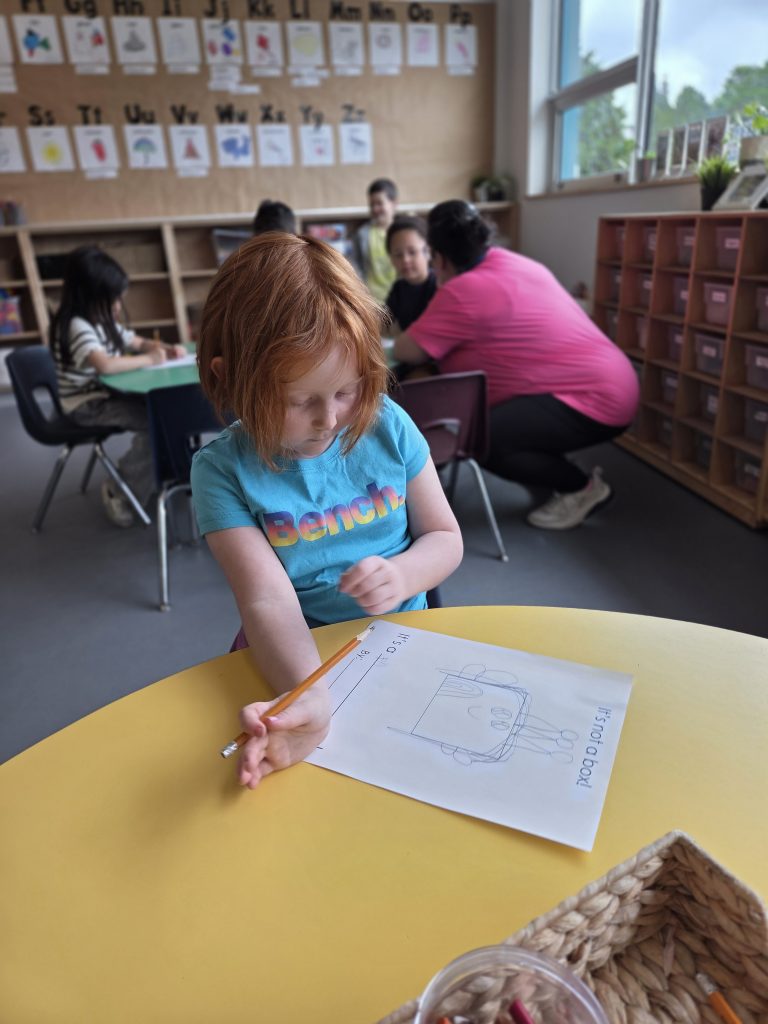 Inspired by the story It’s Not a Box, our class transformed ordinary cardboard boxes into extraordinary creations! We used our imaginations to transform plain cardboard boxes into rockets, cars, animals, homes, and so much more. With just a little creativity, markers, paint, and tape, each student brought their own ideas to life. This activity sparked creative thinking and problem-solving—and most importantly, lots of fun!