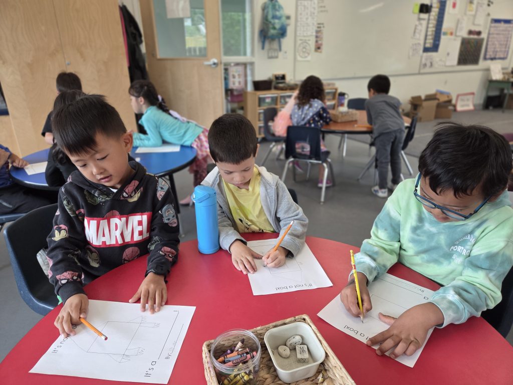 Division 12 learning and exploring hands-on activities in literacy, math, and art.