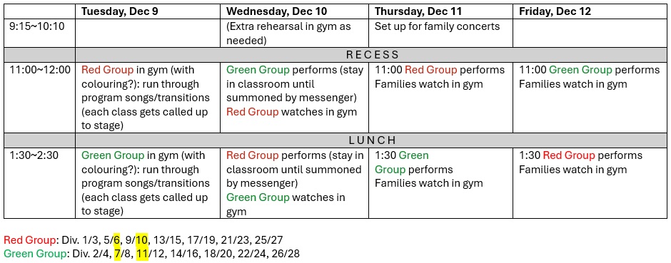 Here are details for the winter concerts this year. Feel free to practice the singing and/or actions!