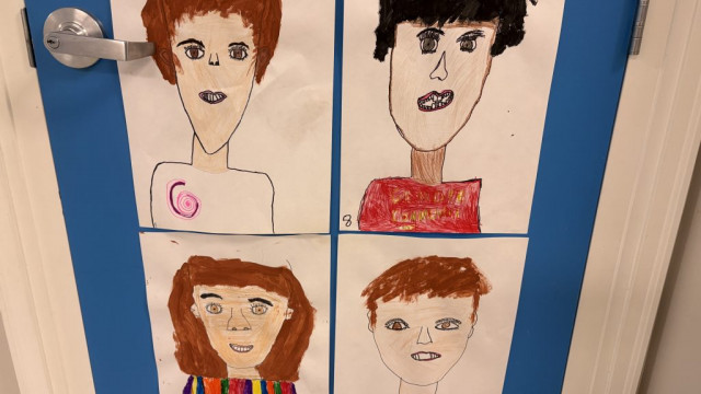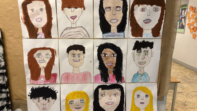 Our first art lesson involved learning how to draw our faces anatomically. We talked about different shapes of faces, eyes, noses and mouths. We did lots of practice and learning on white boards first. This allowed the students to have a growth mindset, to erase as much as they wanted and to try again. When they were finally given their large piece of paper to complete their final project, the students were much more prepared. Many of the students even fooled their parents with which one was theirs! Well done Division 13! Your self portraits look so realistic!