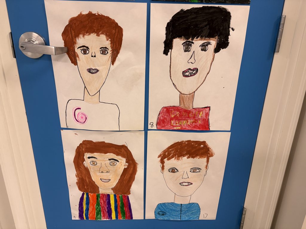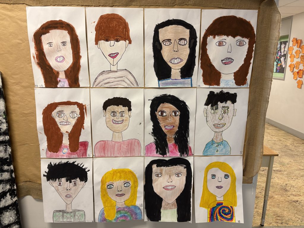 Our first art lesson involved learning how to draw our faces anatomically. We talked about different shapes of faces, eyes, noses and mouths. We did lots of practice and learning on white boards first. This allowed the students to have a growth mindset, to erase as much as they wanted and to try again. When they were finally given their large piece of paper to complete their final project, the students were much more prepared. Many of the students even fooled their parents with which one was theirs! Well done Division 13! Your self portraits look so realistic!