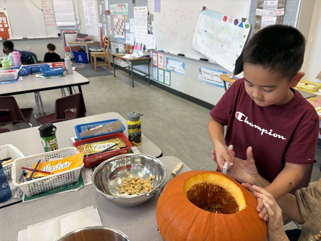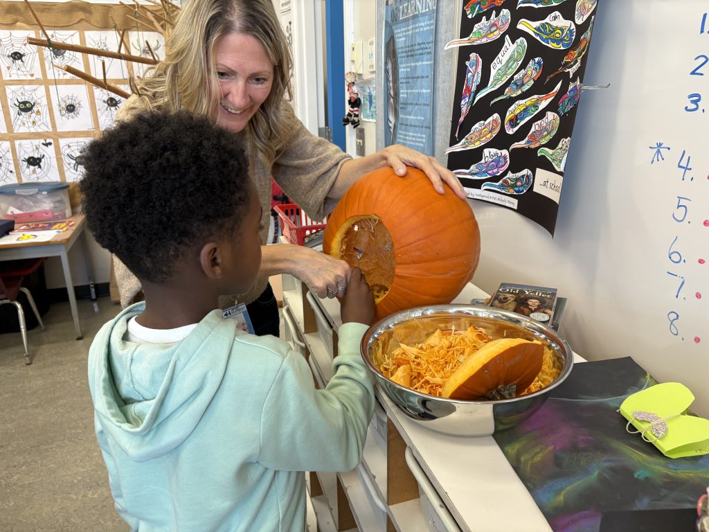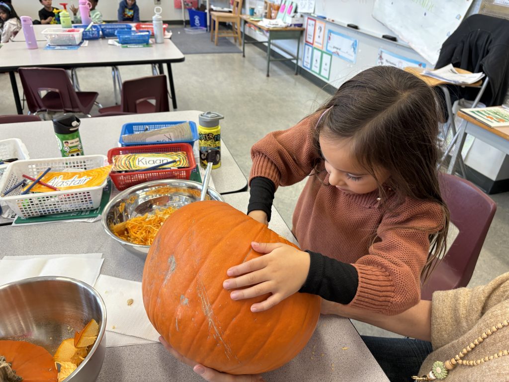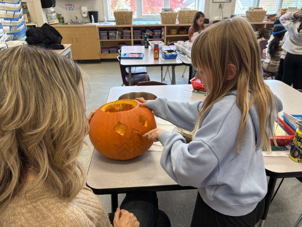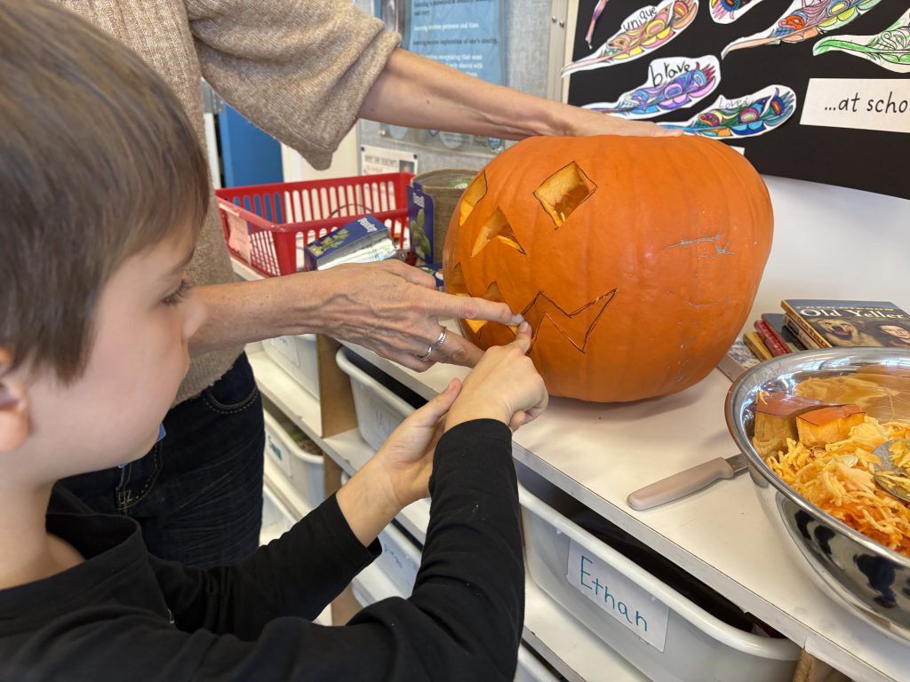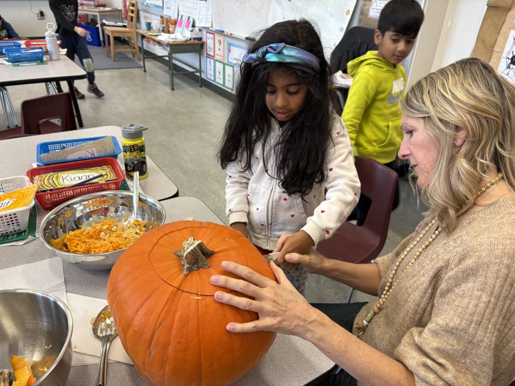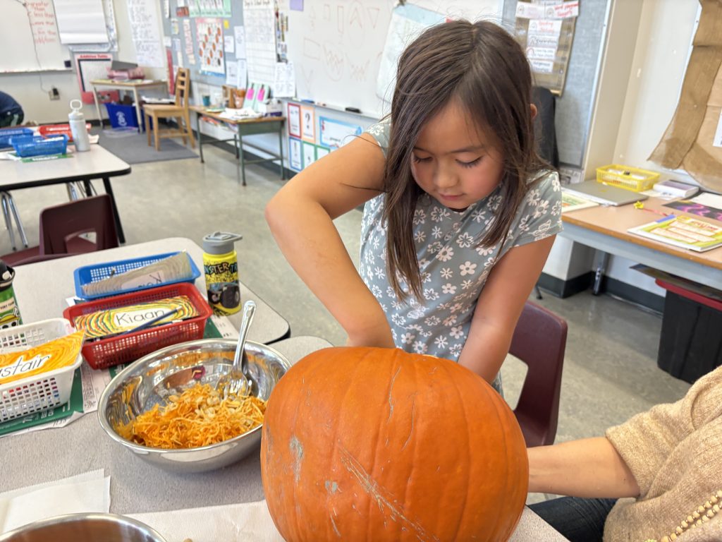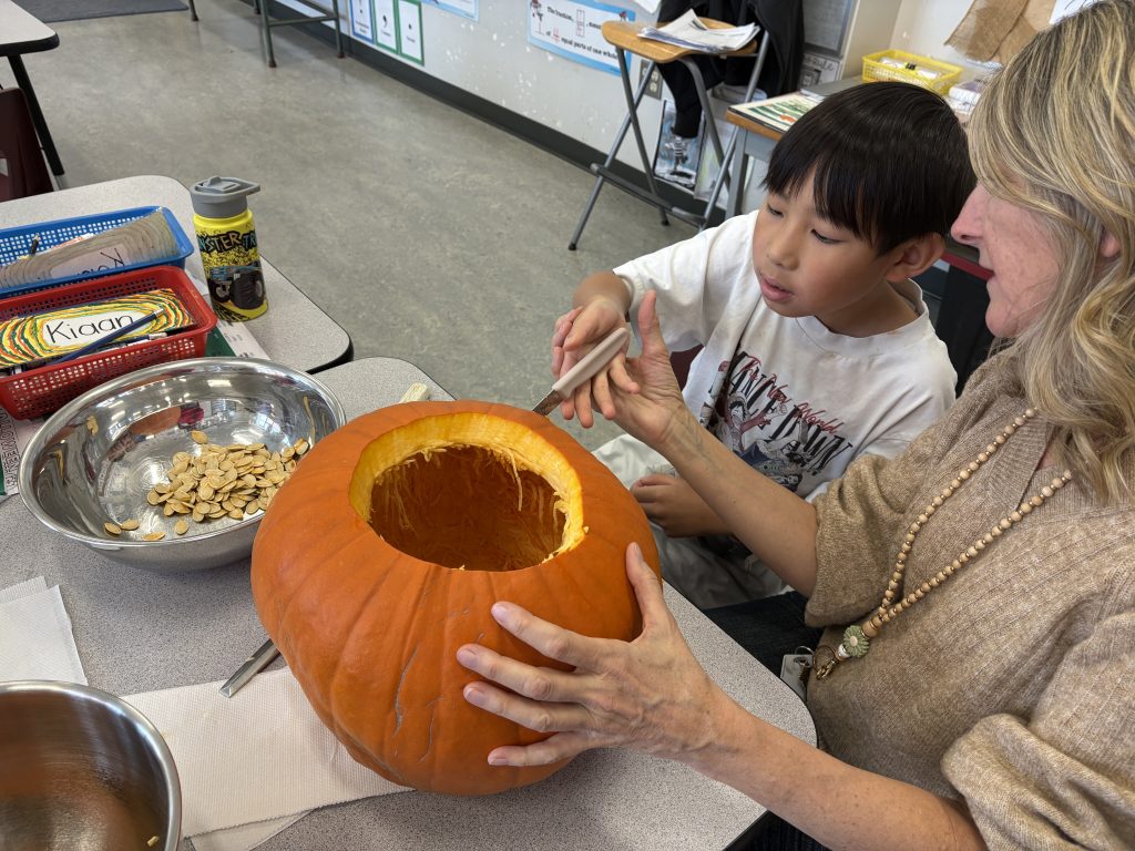 This week, Division 13 brainstormed ideas on how to carve our pumpkin and then voted for our favourite shapes. All of the students helped to carve a part of the pumpkin’s face and then worked to clean out the inside. They did a great job! It was a first time seeing inside a pumpkin for some students! We also got to enjoy the roasted pumpkin seeds during our Halloween movie afternoon. At the end of the day, we did a draw and Jane was the lucky recipient of our group pumpkin. Happy Halloween! We hope you all had a fantastic night of trick-or-treating!
