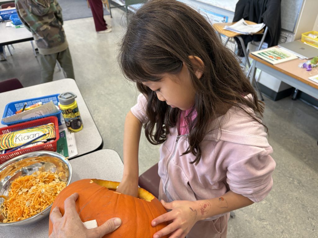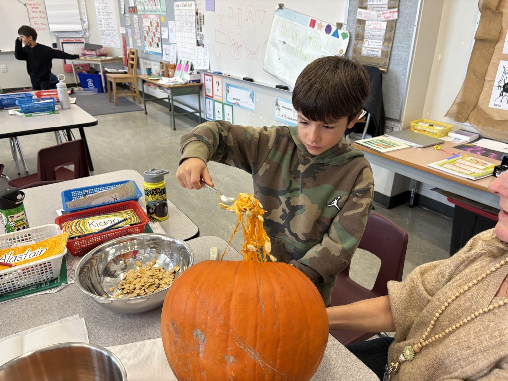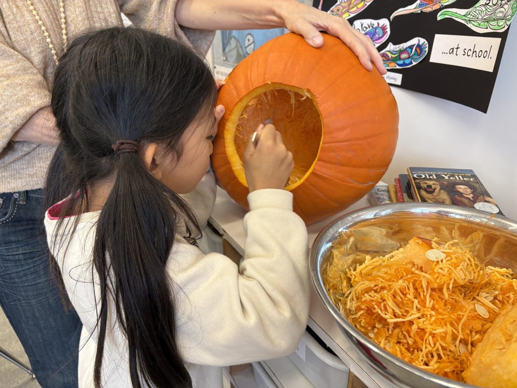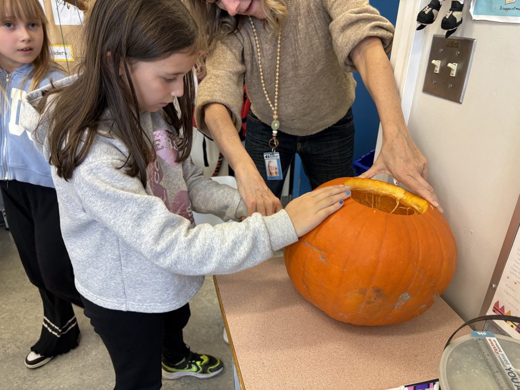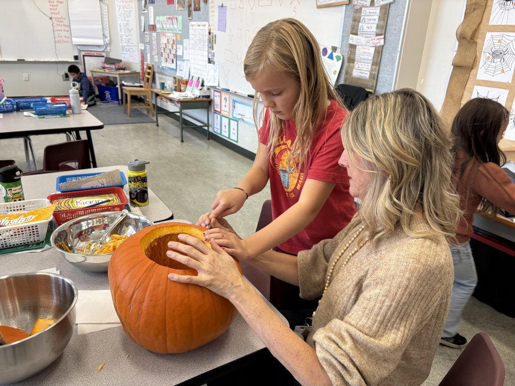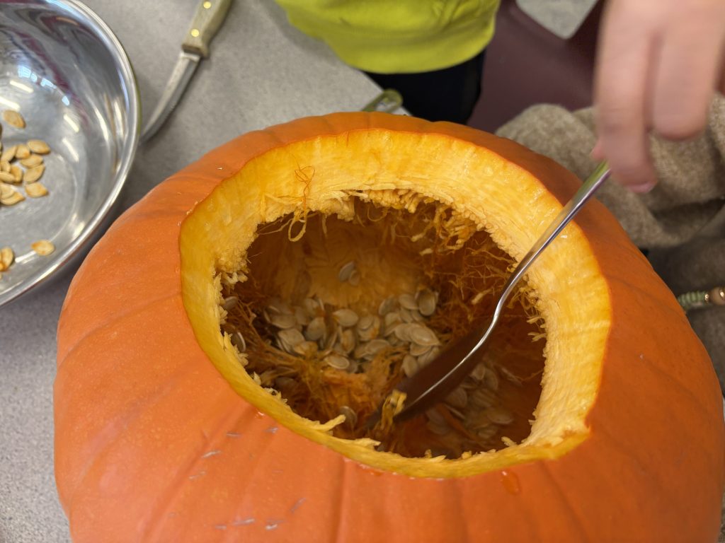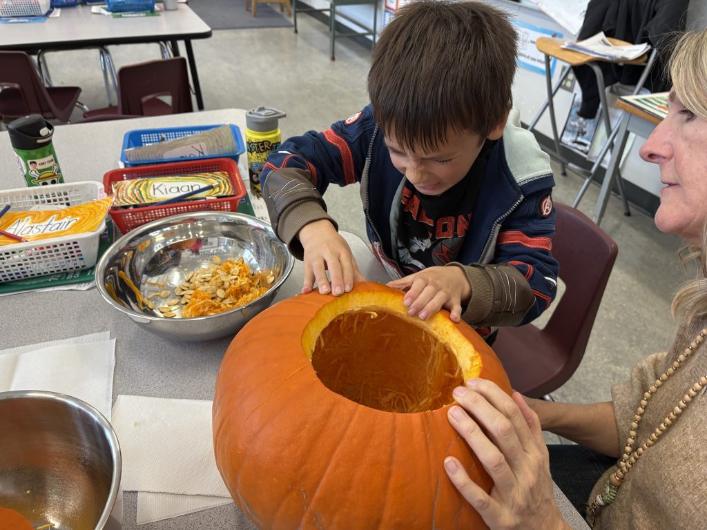 This week, Division 13 brainstormed ideas on how to carve our pumpkin and then voted for our favourite shapes. All of the students helped to carve a part of the pumpkin’s face and then worked to clean out the inside. They did a great job! It was a first time seeing inside a pumpkin for some students! We also got to enjoy the roasted pumpkin seeds during our Halloween movie afternoon. At the end of the day, we did a draw and Jane was the lucky recipient of our group pumpkin. Happy Halloween! We hope you all had a fantastic night of trick-or-treating!