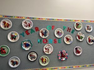 The students got to design their own horse with costumes they chose to celebrate the Lunar New Year! They also had to create a background on the paper plate to display their horses. Come by and check them out in our hallway outside our room!
