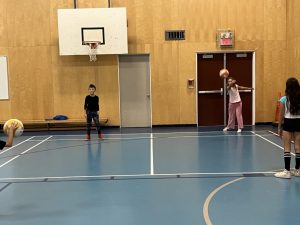 This term, our class is learning volleyball skills: bumping, volleying and serving!  They are doing very well with this so far!