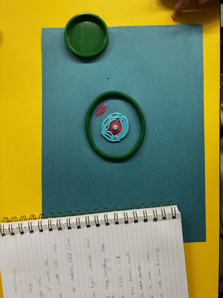 Students were introduced to the basic structures inside plant and animal cells. They learned about key organelles and their roles, and then created their own Play-Doh cell models to visually represent what they learned. The hands-on building helped deepen their understanding and sparked a lot of conversation and curiosity.