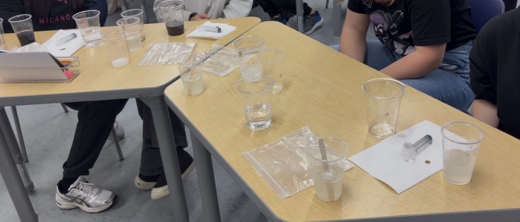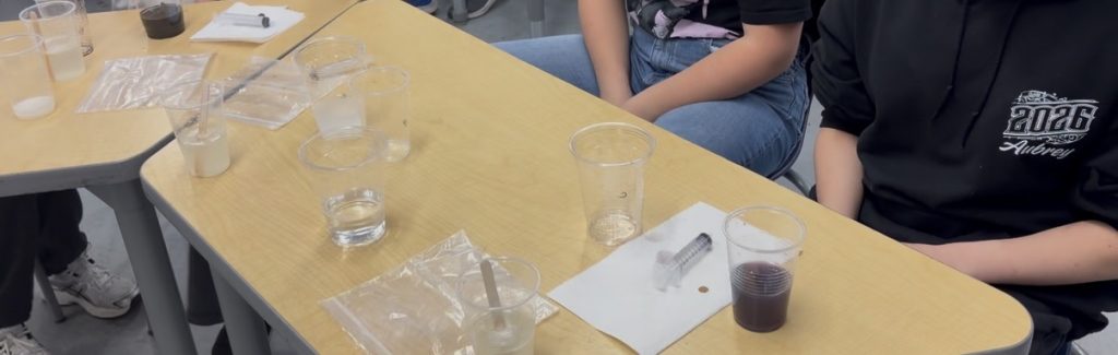 Through guided steps, students carefully mixed solutions, measured liquids, and observed outcomes. They practiced forming hypotheses (“If we mix this, then what will happen?”), and then tested their predictions by carrying out experiments and recording data.