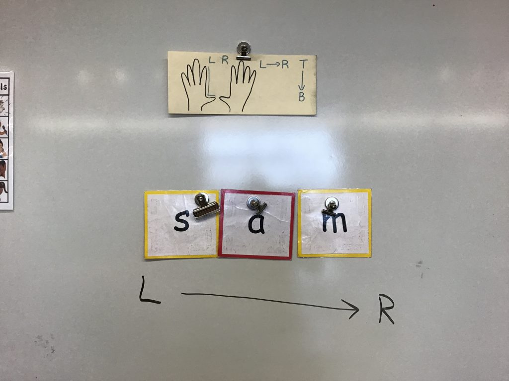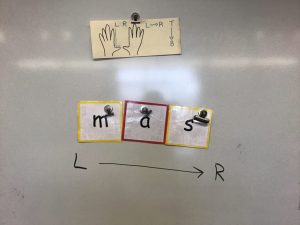 We also talked how some sound are continuous sounds (/a/short vowel, /s/, /m/, /l/, /f/, /n/, /o/short vowel) where the sound continues until we run out of breath. Some sounds are quick sounds (/p/, /t/, /u/short vowels). We also talked about how some sounds make a quieter sound, which are usually the sounds where we are just pushing the air out of our mouth such as /s/, /f/, /t/. Other sounds are louder as they pass the vocal cords and are voiced sounds like /m/, /l/, /d/. We would put our hand on our throat to determine whether the sound is voiced or unvoiced.