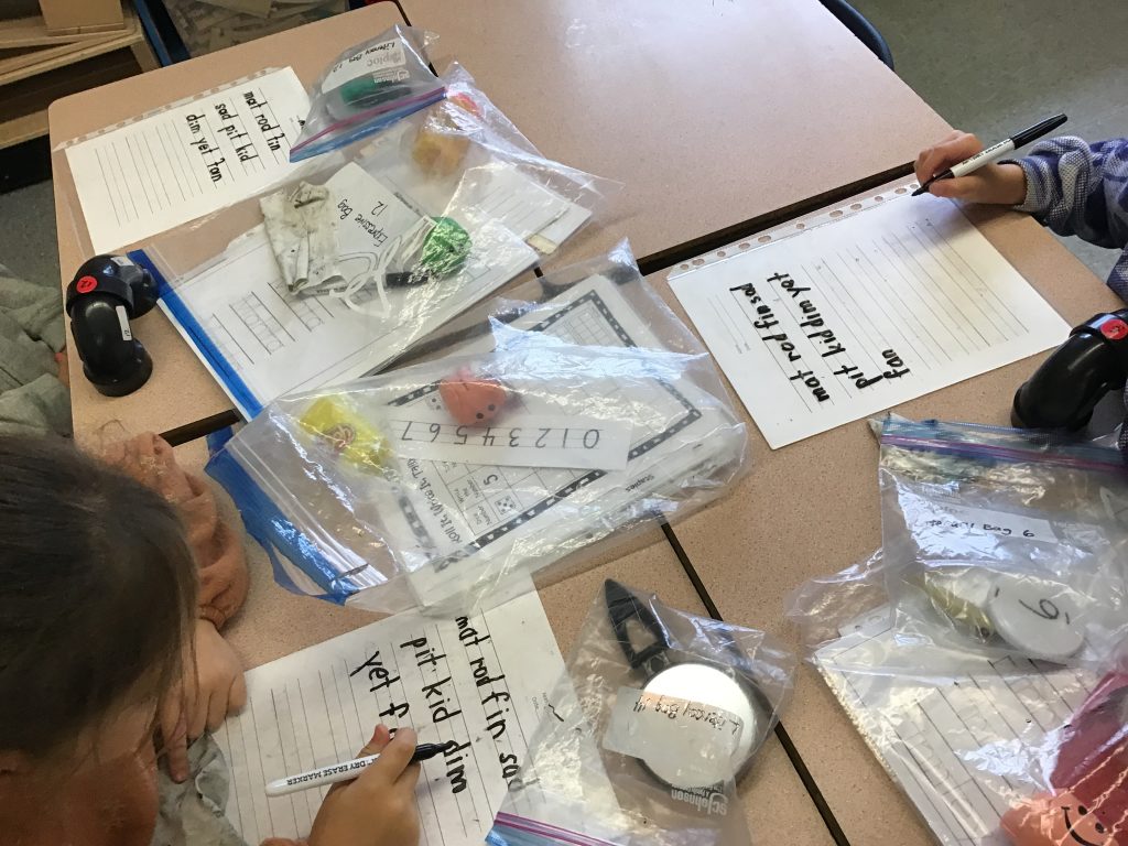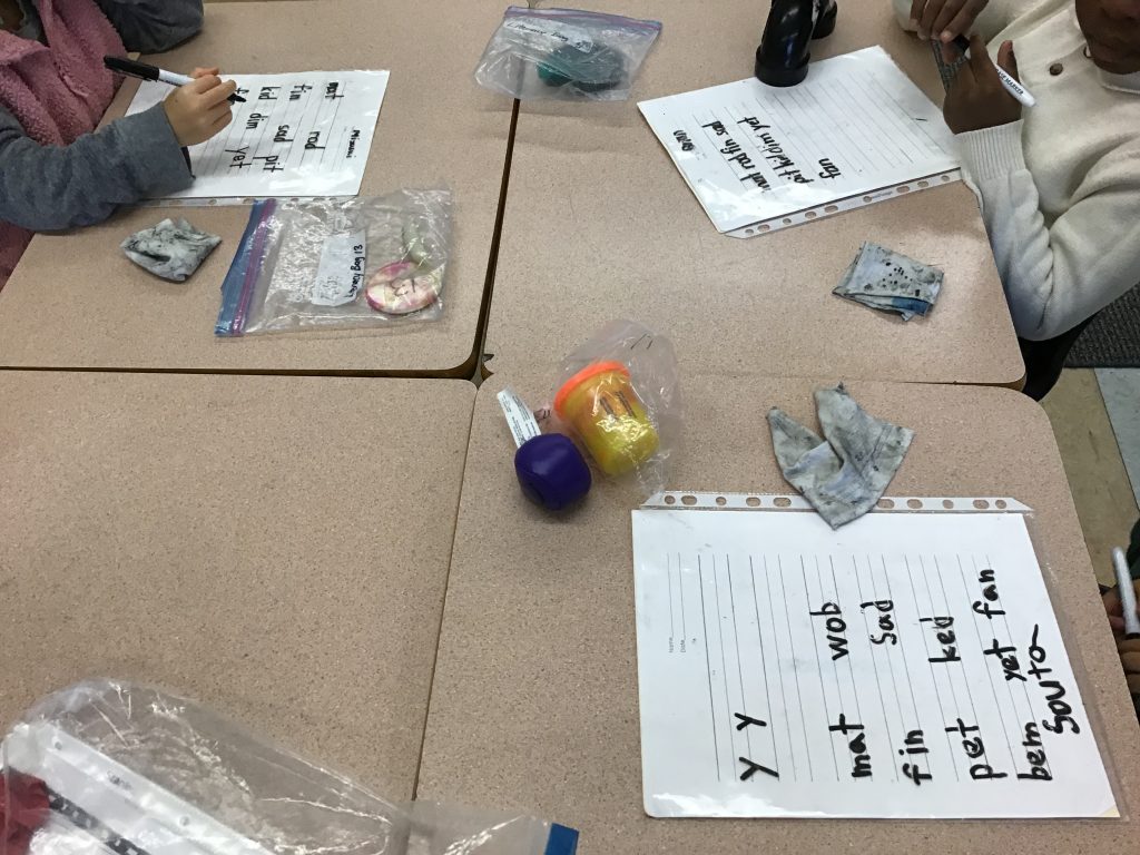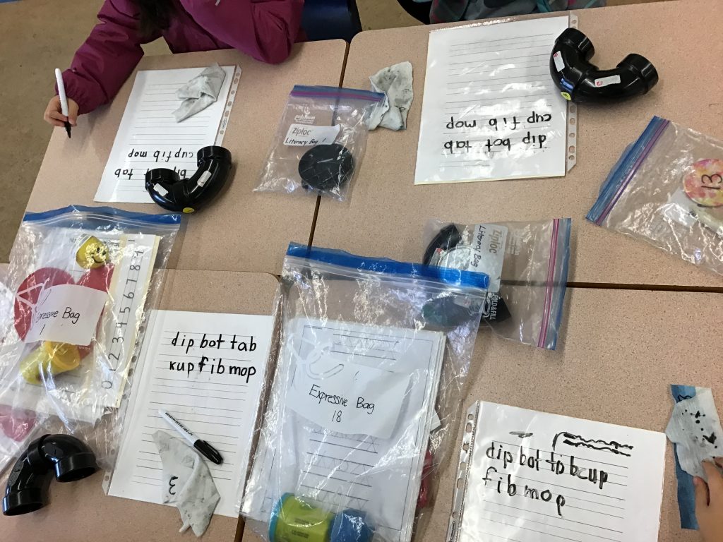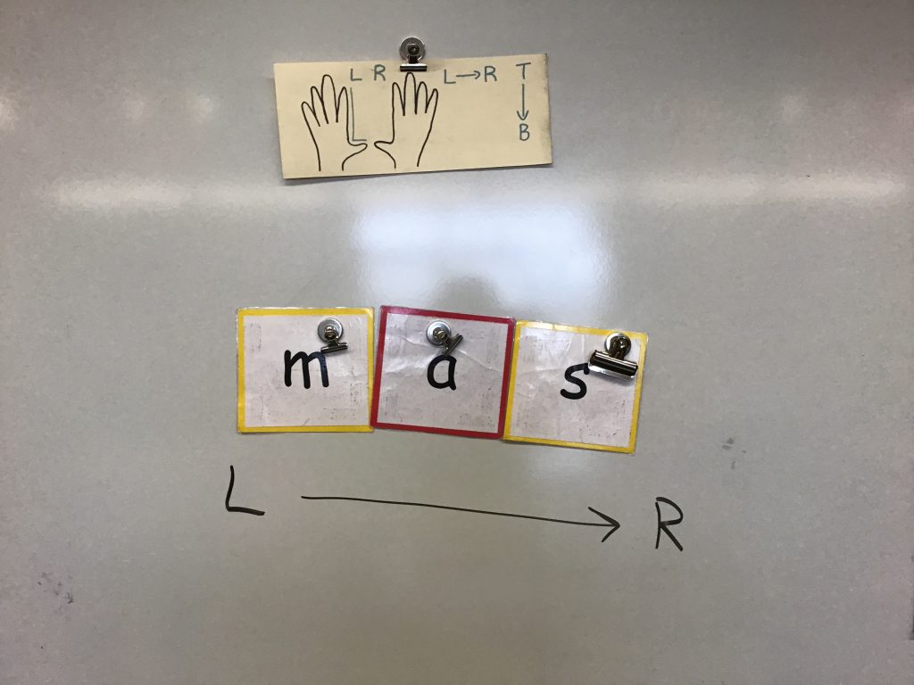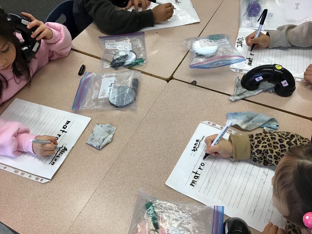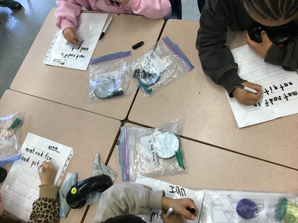The literacy bag has a hearing phone, a mirror, and a reading finger (which will be used later in the year). The hearing phone helps to amplify the sound and the mirror helps student to ensure proper mouth formation, which include the tongue placement, lip formation, and how the air is traveling. Sometimes air comes just from our mouth making a softer sound (such as /s/ or /f/) or it comes from our lungs passing the vocal cords which make the sound louder as it vibrates through our vocal cords.