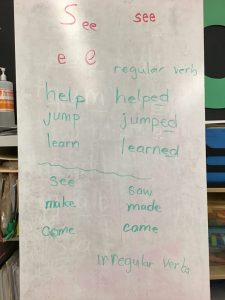 On the week of Oct. 27, we learned that verbs (action or doing words) are either regular (the base word doesn’t change) or irregular (the base word changes).