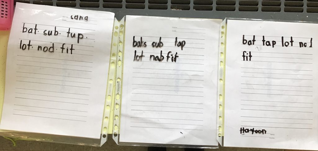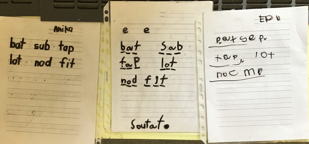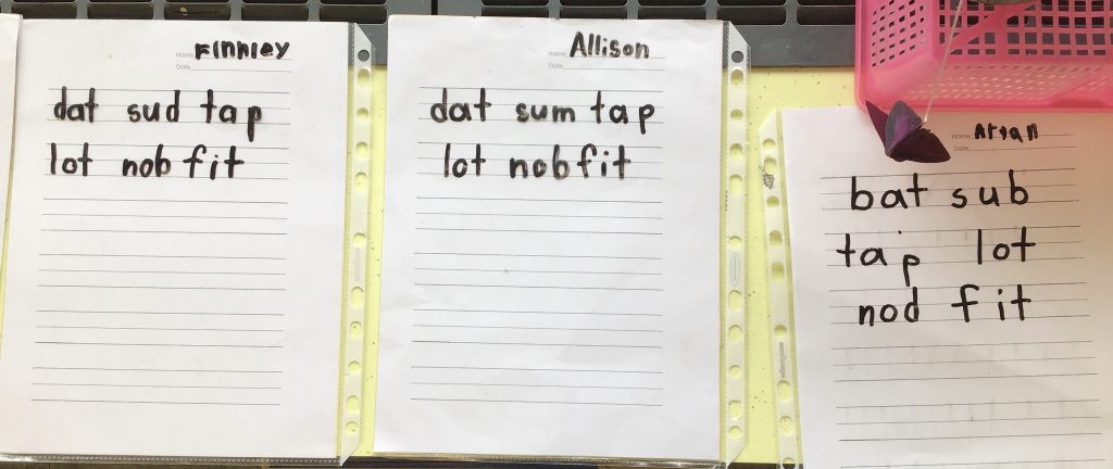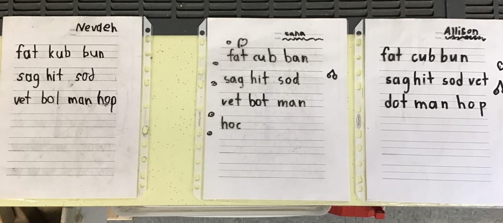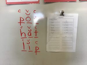 To strengthen our practice in looking at the various phonemic rules, word find helps us to hone in on looking for those rules. The photo below shows an example of finding CVC words. These are consonant vowel consonant words.