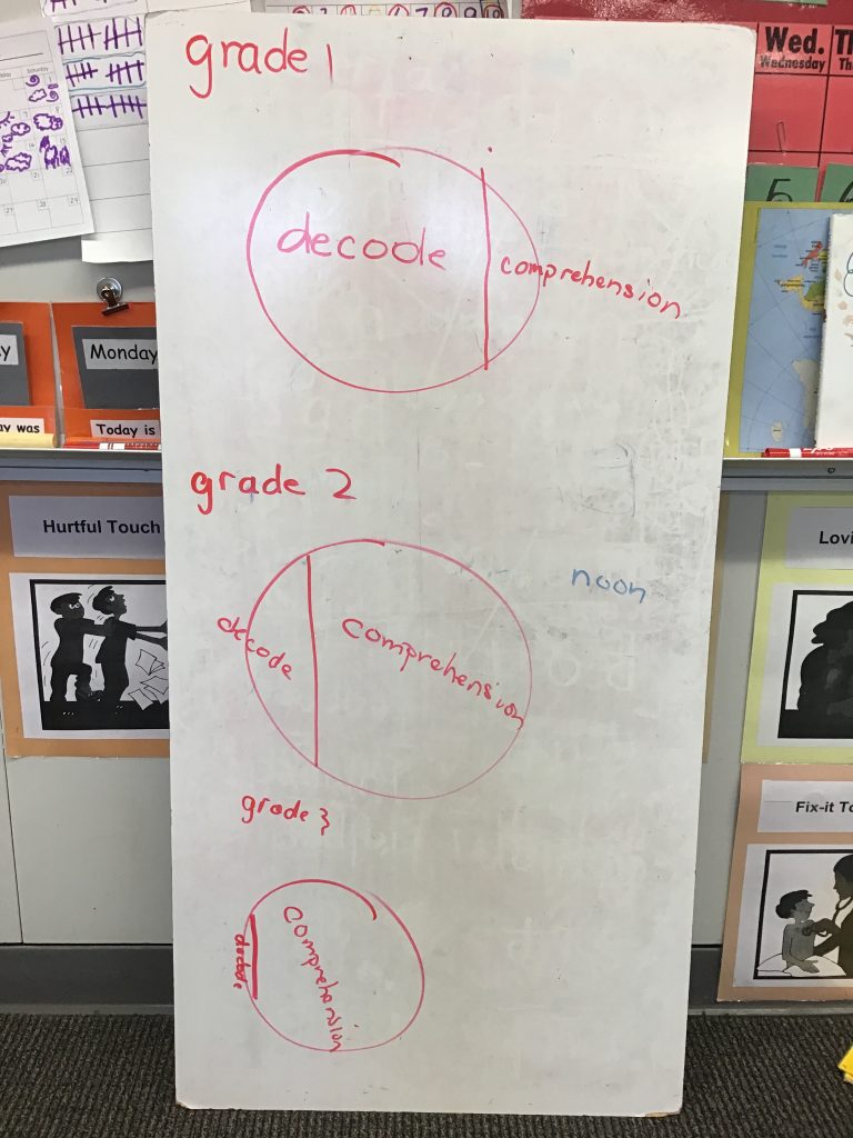Reading has two components, which are decoding and comprehension. In Grade 1, we focus on decoding which is deciphering what the words say. Once we figure out the words, we now have to figure out what the words mean, which is the comprehension. As we strengthen our reading ability, the comprehension becomes more important.