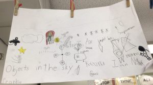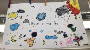 During the week of Jan 19, we began our new unit on objects in the sky. We worked with our table groups and brainstormed what we think we know about the objects in the sky. Before we began, we brainstormed what it would look and sound like for good team work to happen.