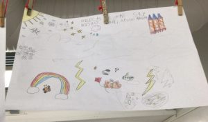 After reading the book, Silver Linings by Fiona Woodcock, we talked about how the characters had opposing perspectives. We went on to say that viewing a cup that has half of the content can seen as half full or half empty. Having a half empty mindset is negative and having a half full mindset is positive. Looking for a silver lining implies looking for the positive in situations, especially negative ones.