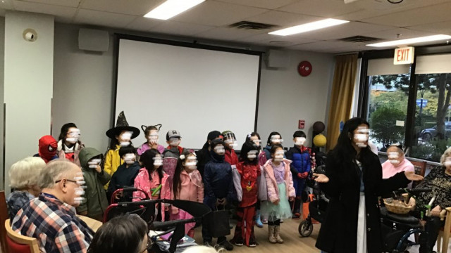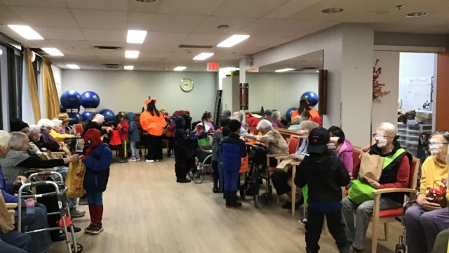 On Halloween, we got an opportunity to go trick-or-treating at Rideau Residence. Our Grand Buddies were excited to see us and they gave us lots of treats. We even sang a song for them.
