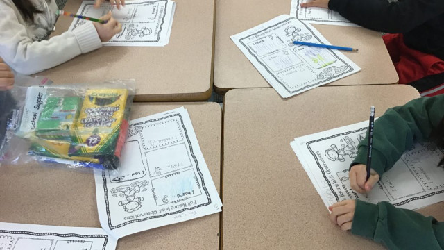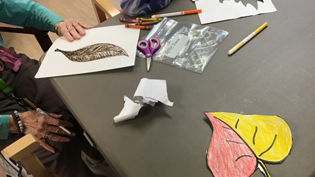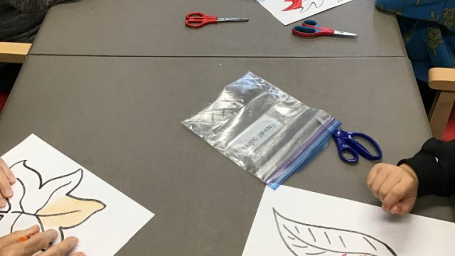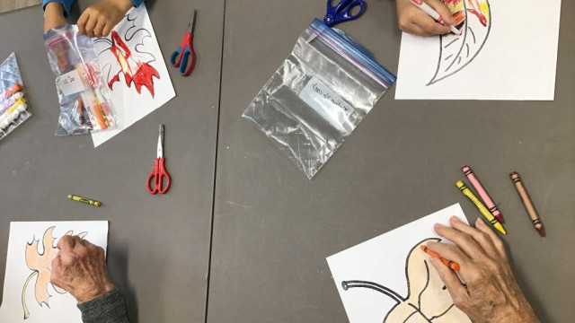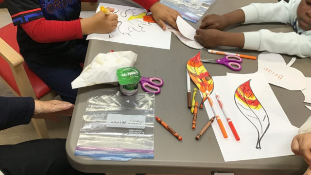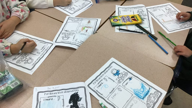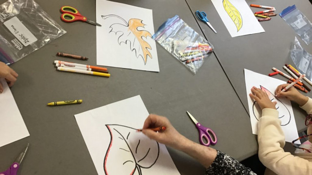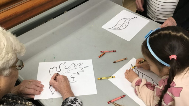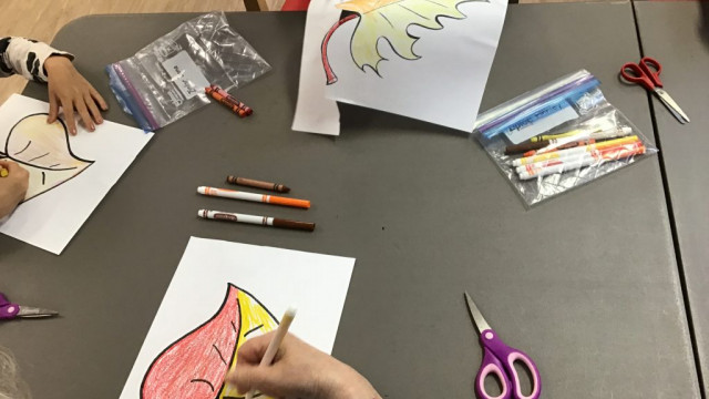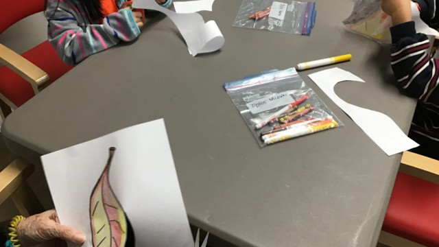 Today, we had our first Grand Buddies visit. We introduced ourselves and chatted about ourselves. We also coloured fall leaves. We also noticed all the fall colours on our walk to and from seeing our Grand Buddies.