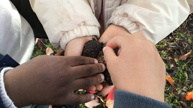 We planted our community garden (grass) by the Kindergarten Modular.