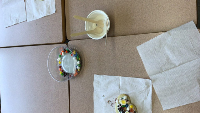 We made monsters using snacks after we thought and planned out our monsters.