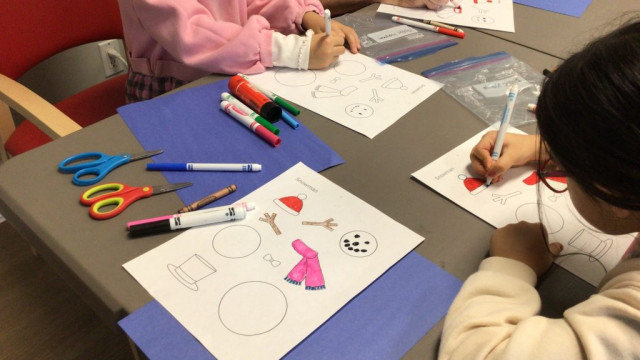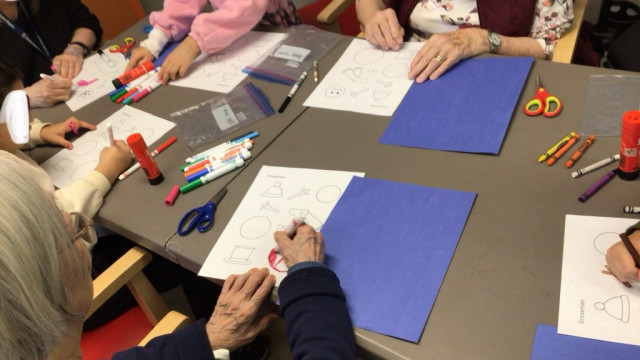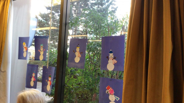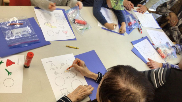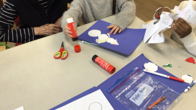 In preparation for our Grand Buddies visit, we made snowman art.