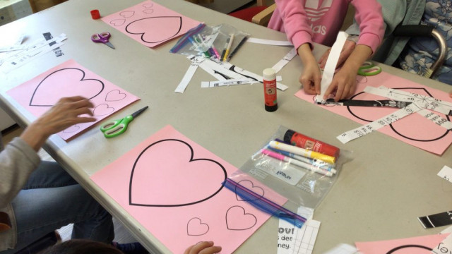 We made heart buddies in preparation of our Grand Buddies visit next week.