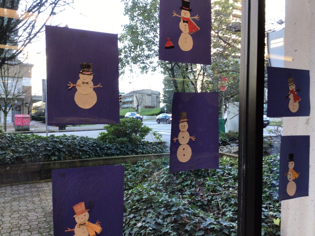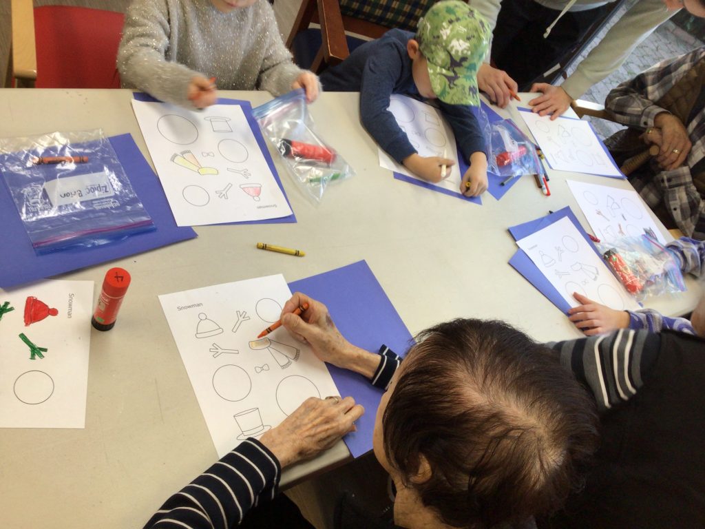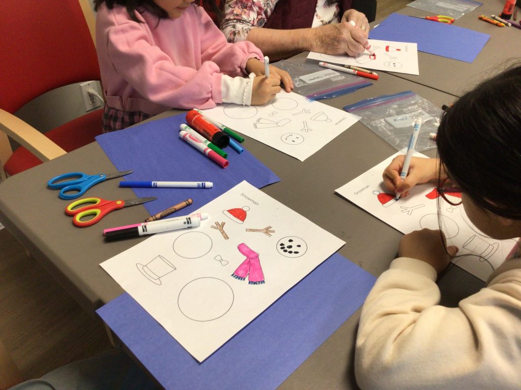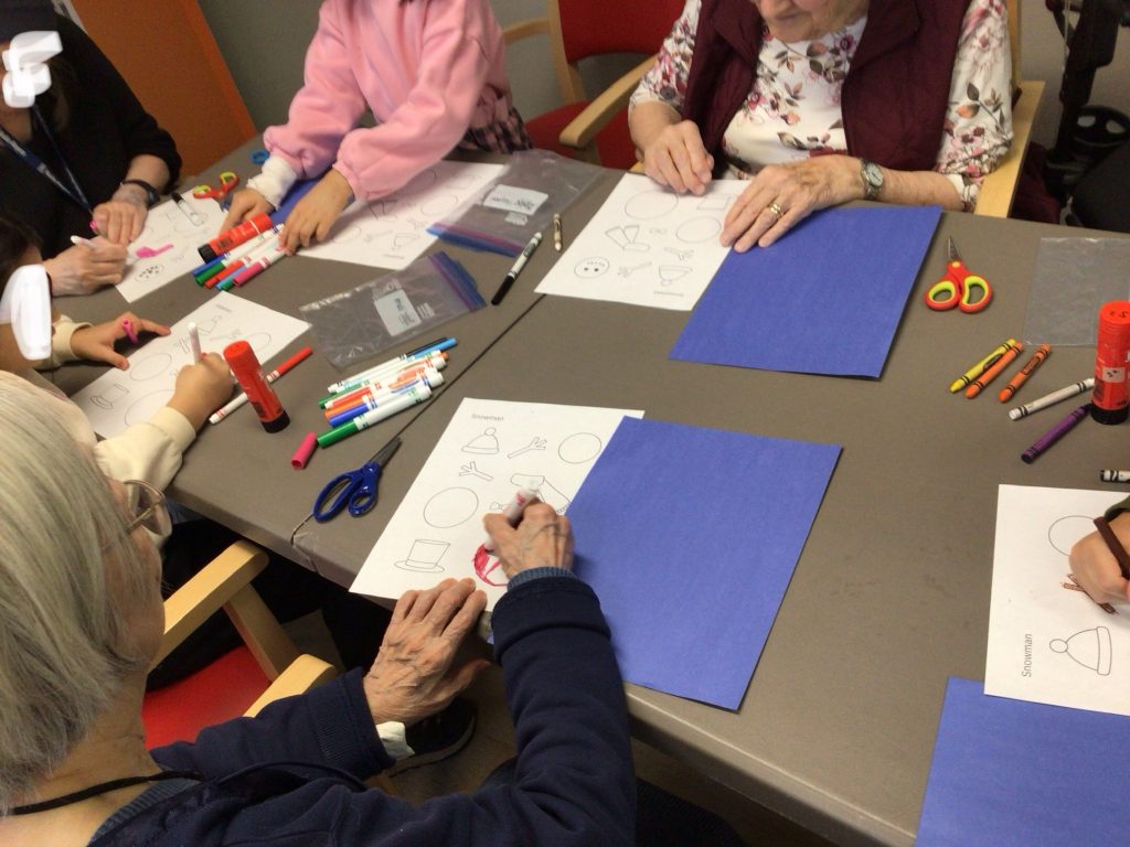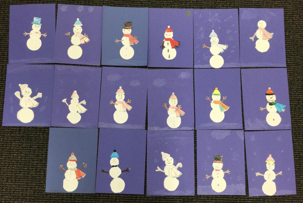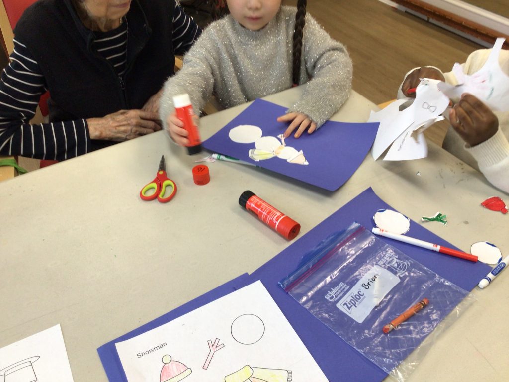 In preparation for our Grand Buddies visit, we made snowman art.