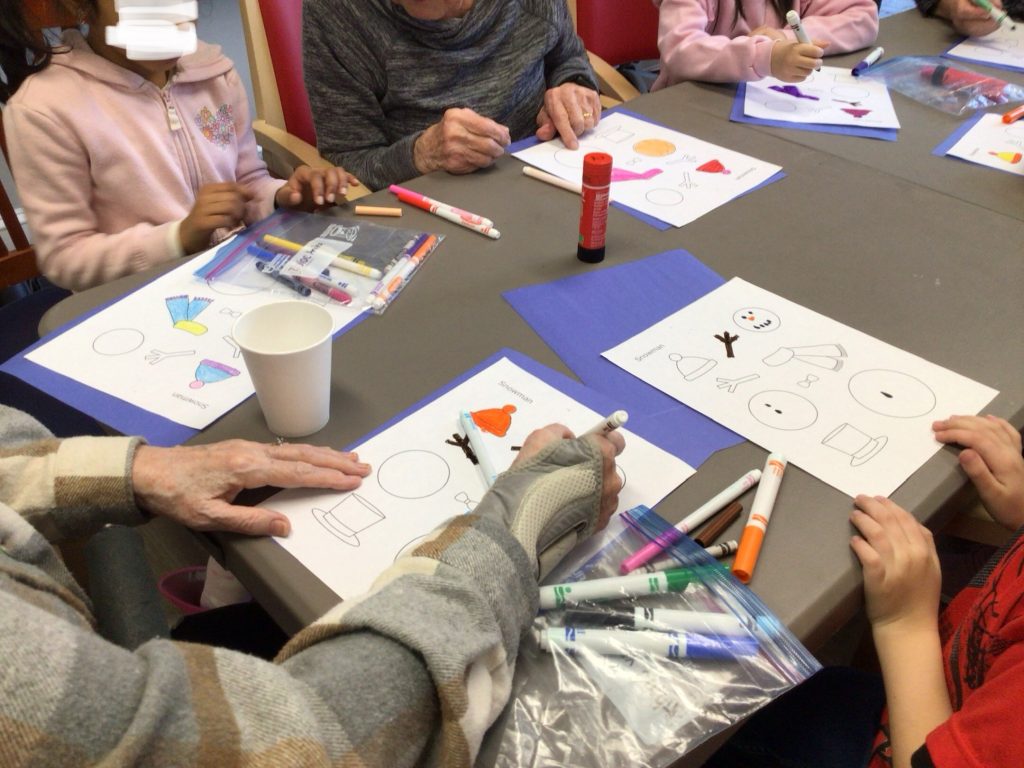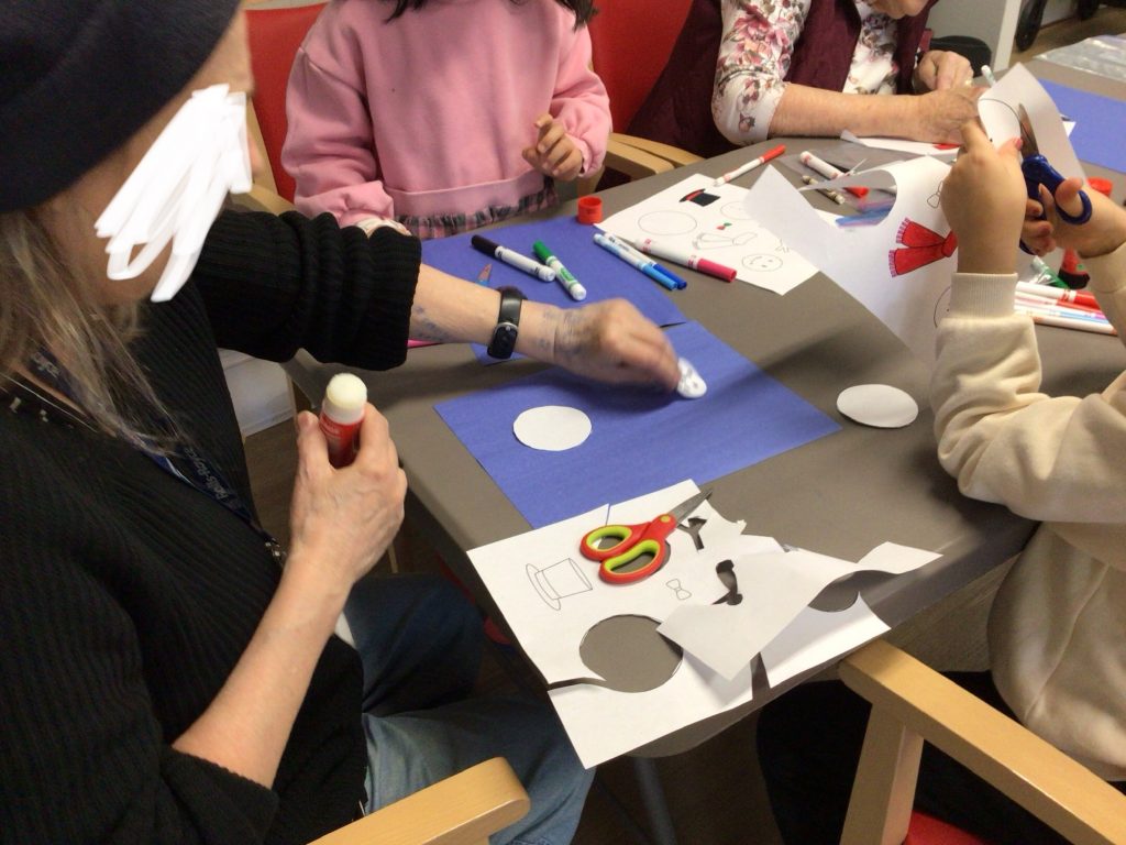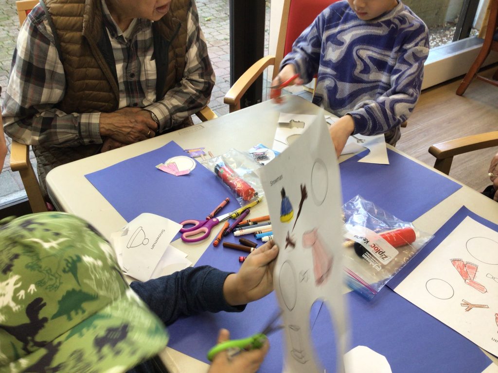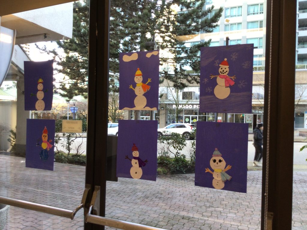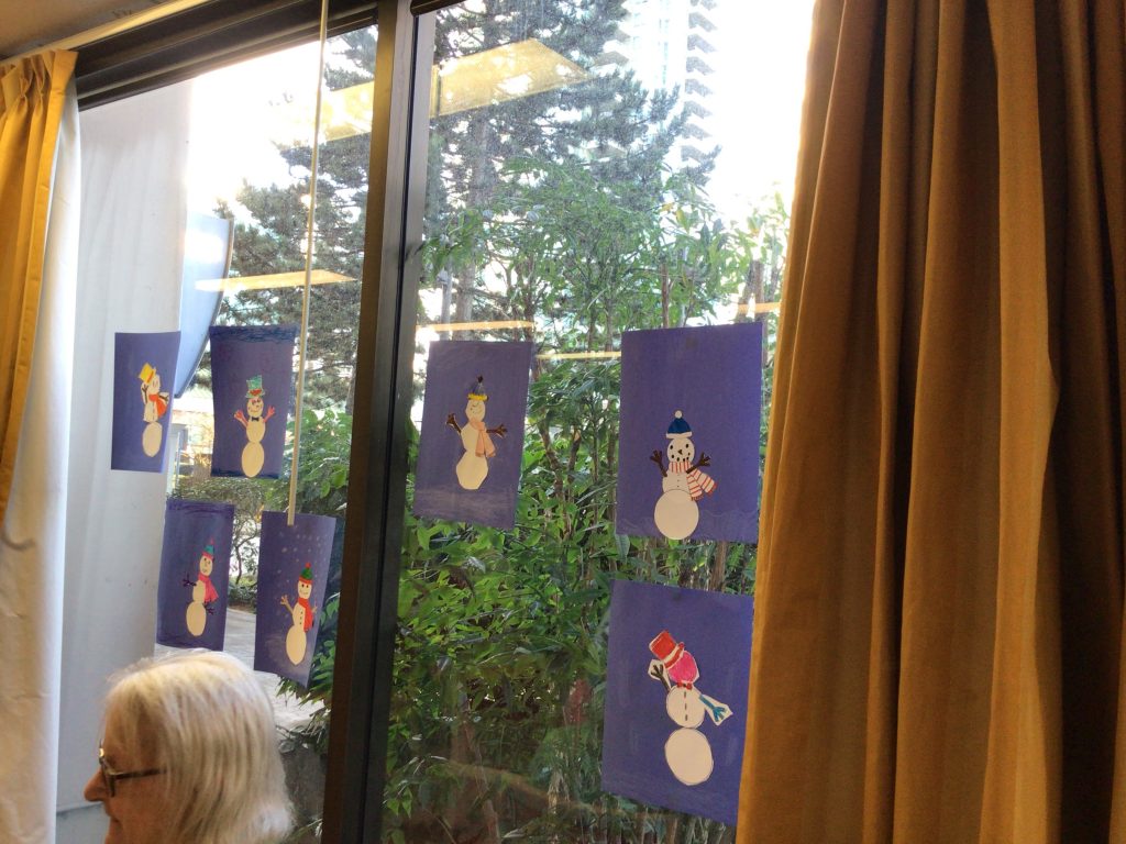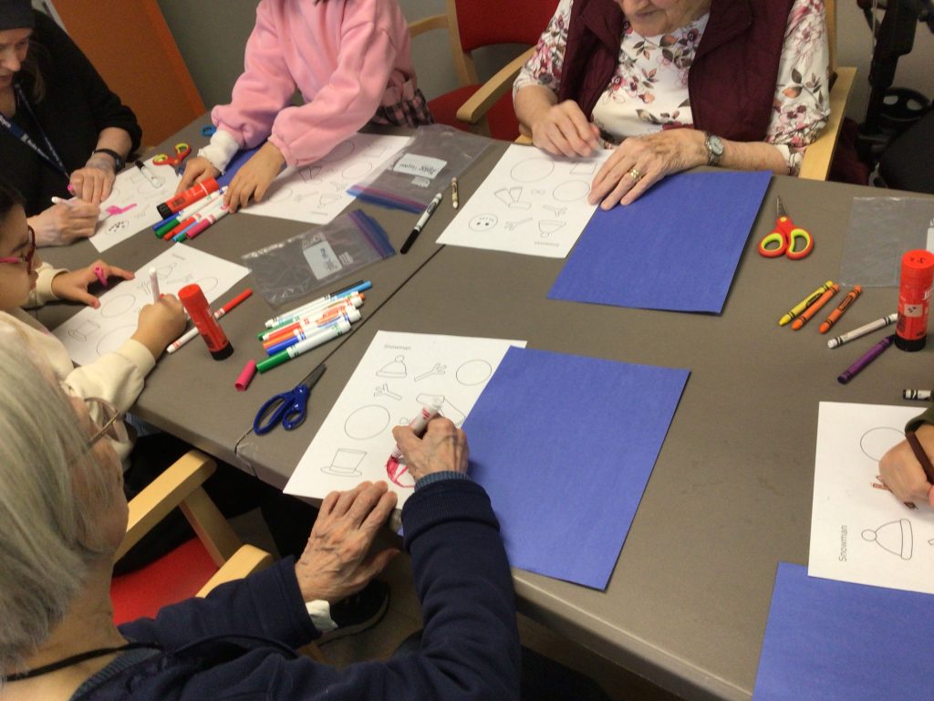 In preparation for our Grand Buddies visit, we made snowman art.