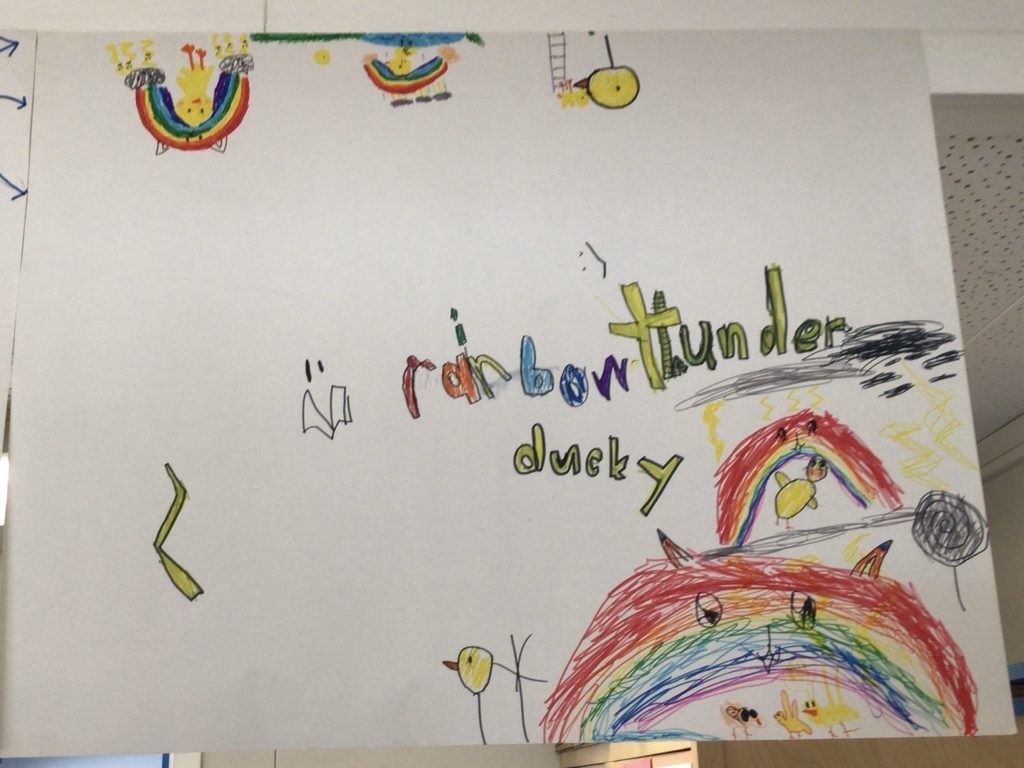 We went to see our Grand Buddies today. We made doves with them as November is the month of Remembrance and doves are a symbol of peace. It was a very wet day, but we some interesting things such as murky water in the ditch by our school and fog, which is low clouds.