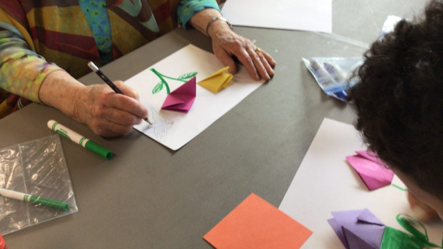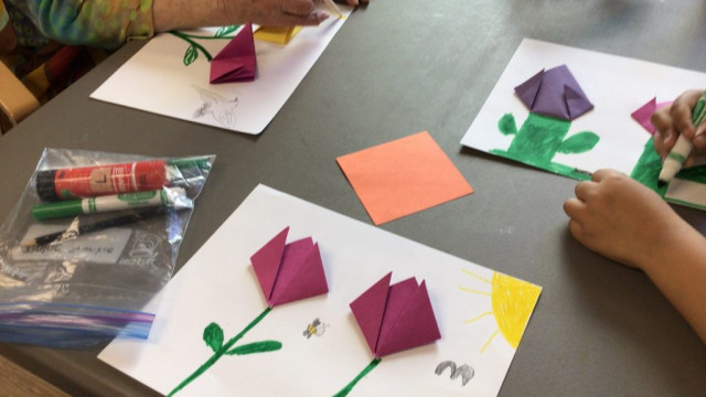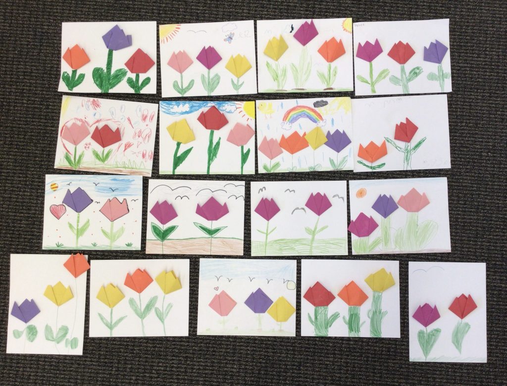 In preparation for our Grand Buddies visit, we made tulip art. Here is what we made.