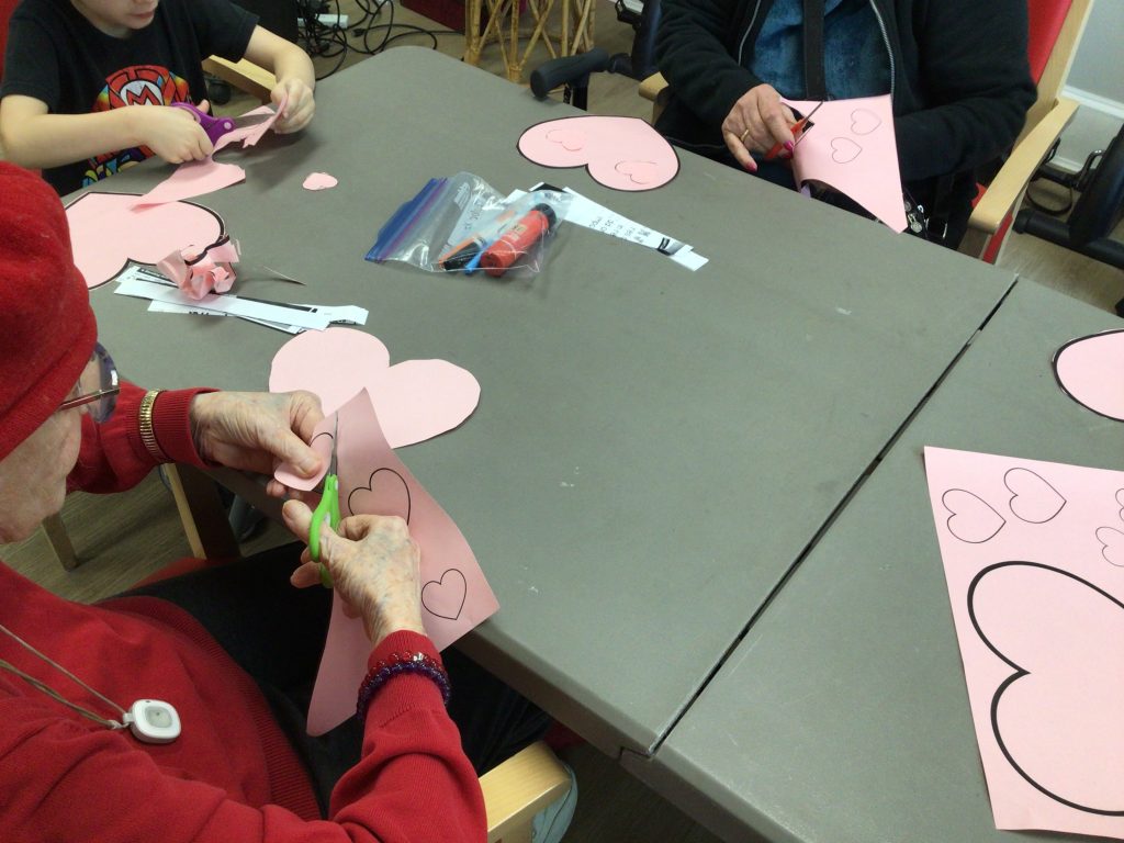 We made heart buddies with our Grand Buddies today. On our walk, we saw signs of spring such as the Snow Drops, Crocuses, Robins, and Chickadees.