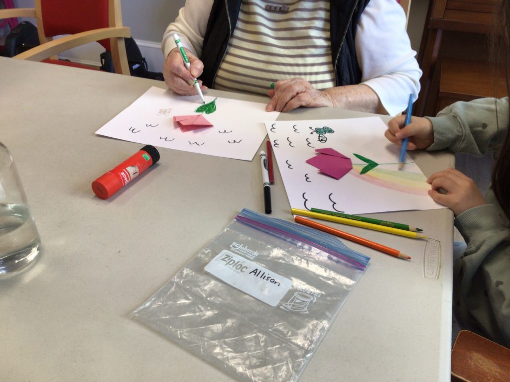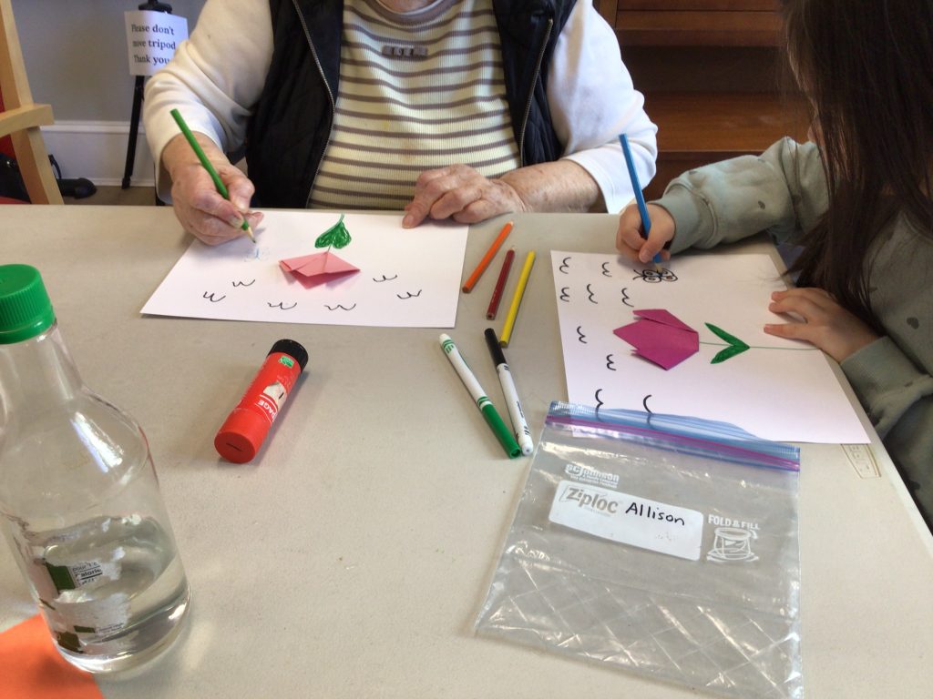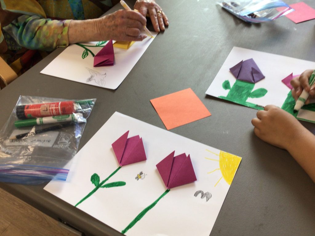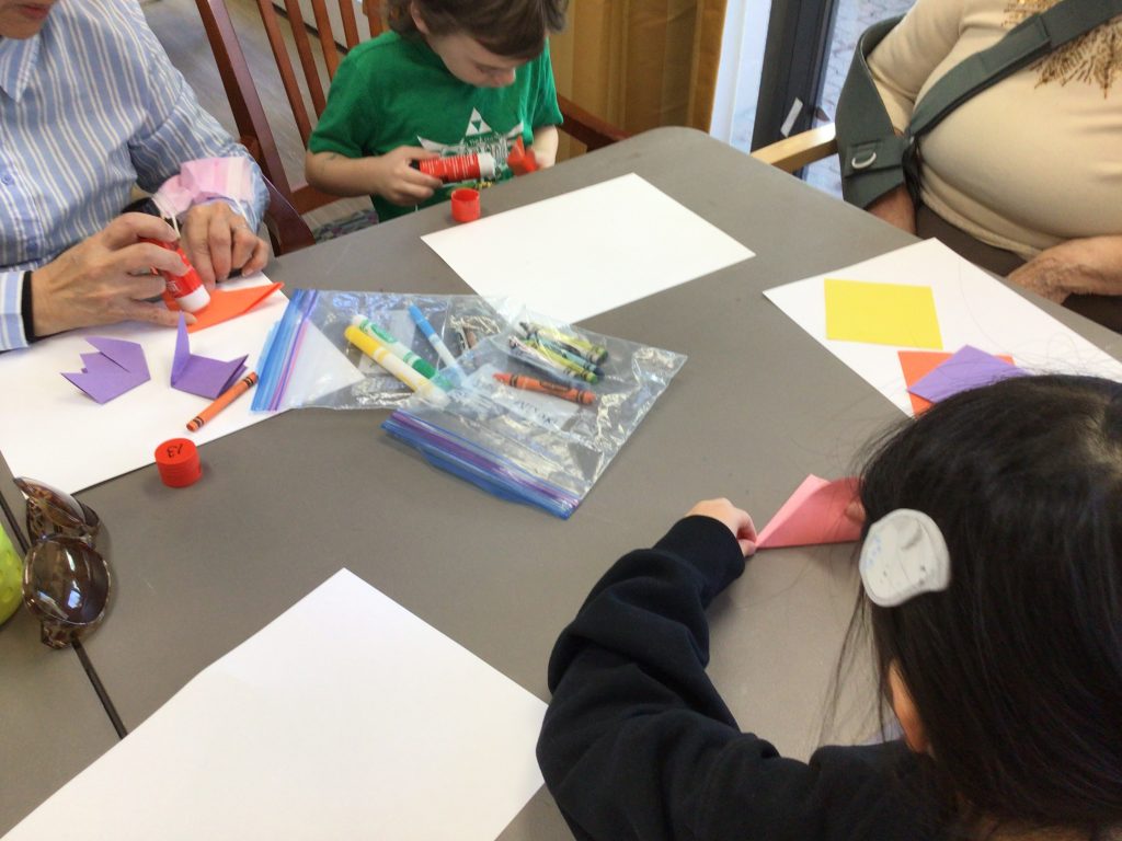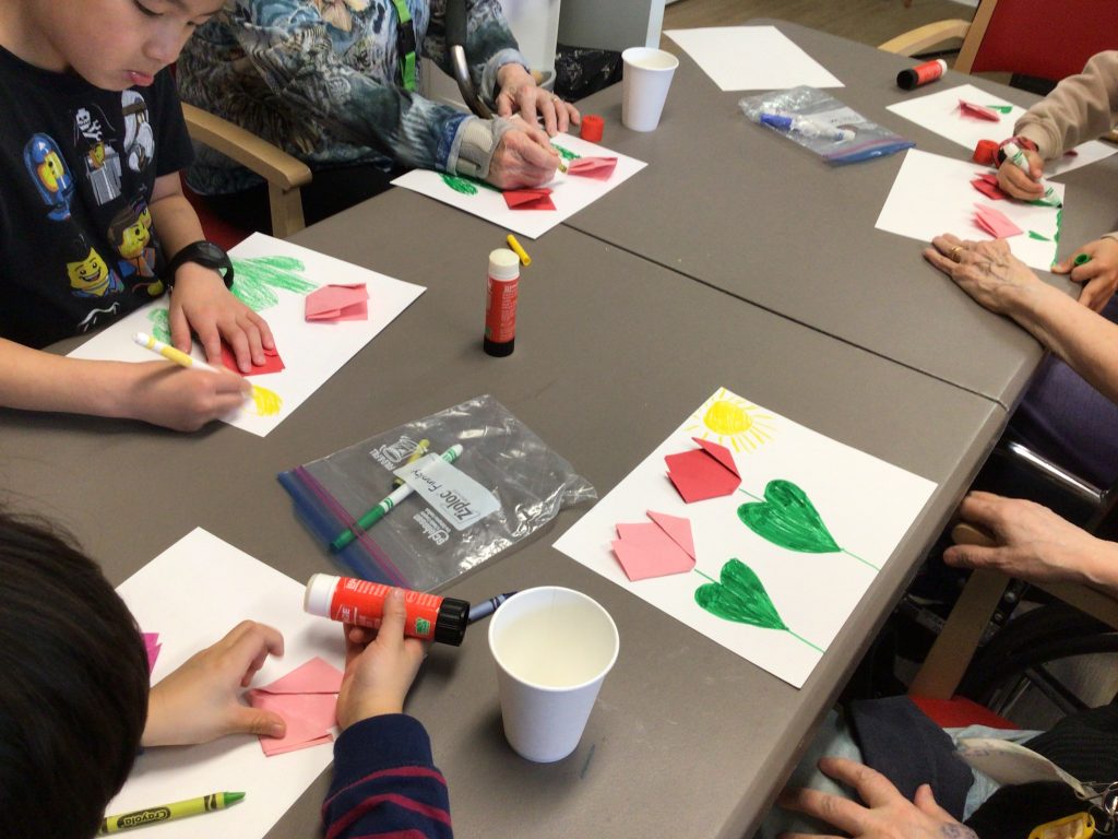 On our way to see the Grand Buddies, we saw many signs of spring. We saw blossoms on our way as well giving us lots of inspiration to make the cherry blossom art with our Grand Buddies.