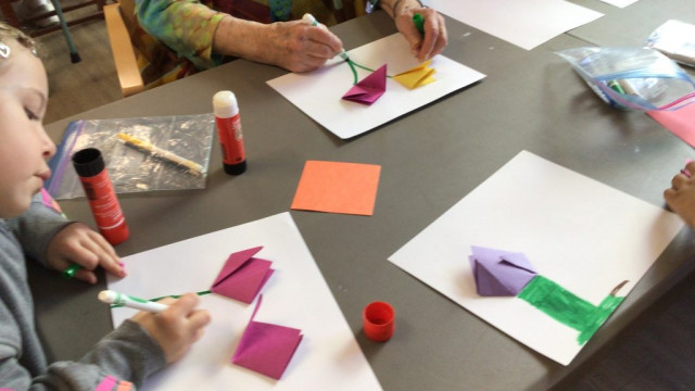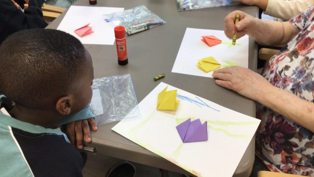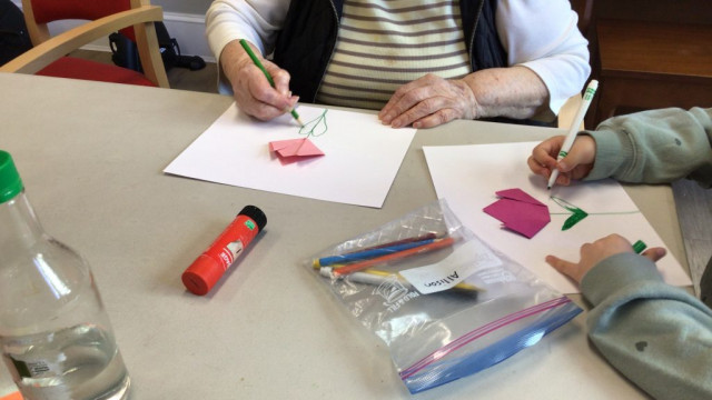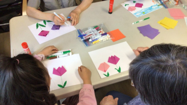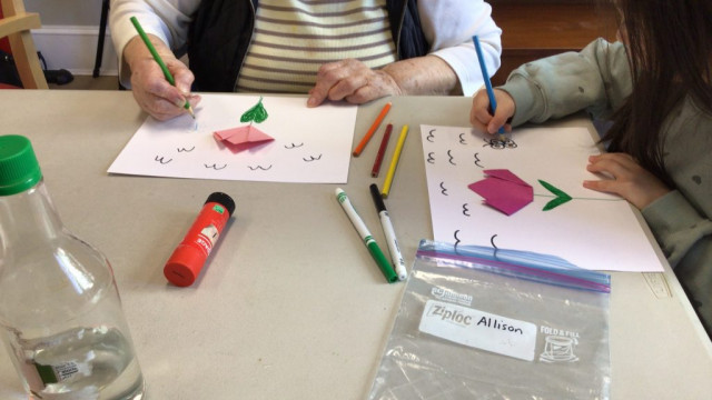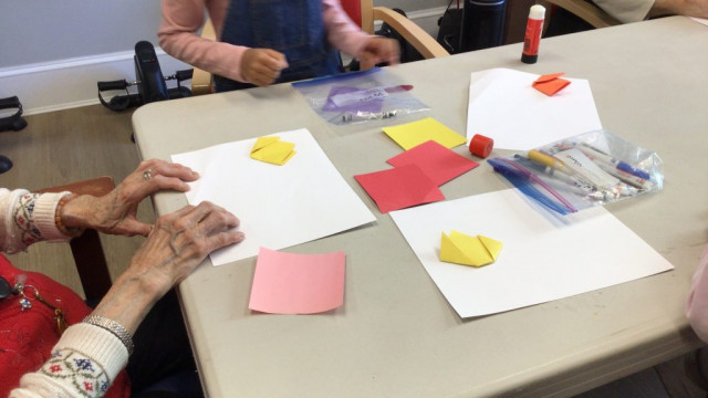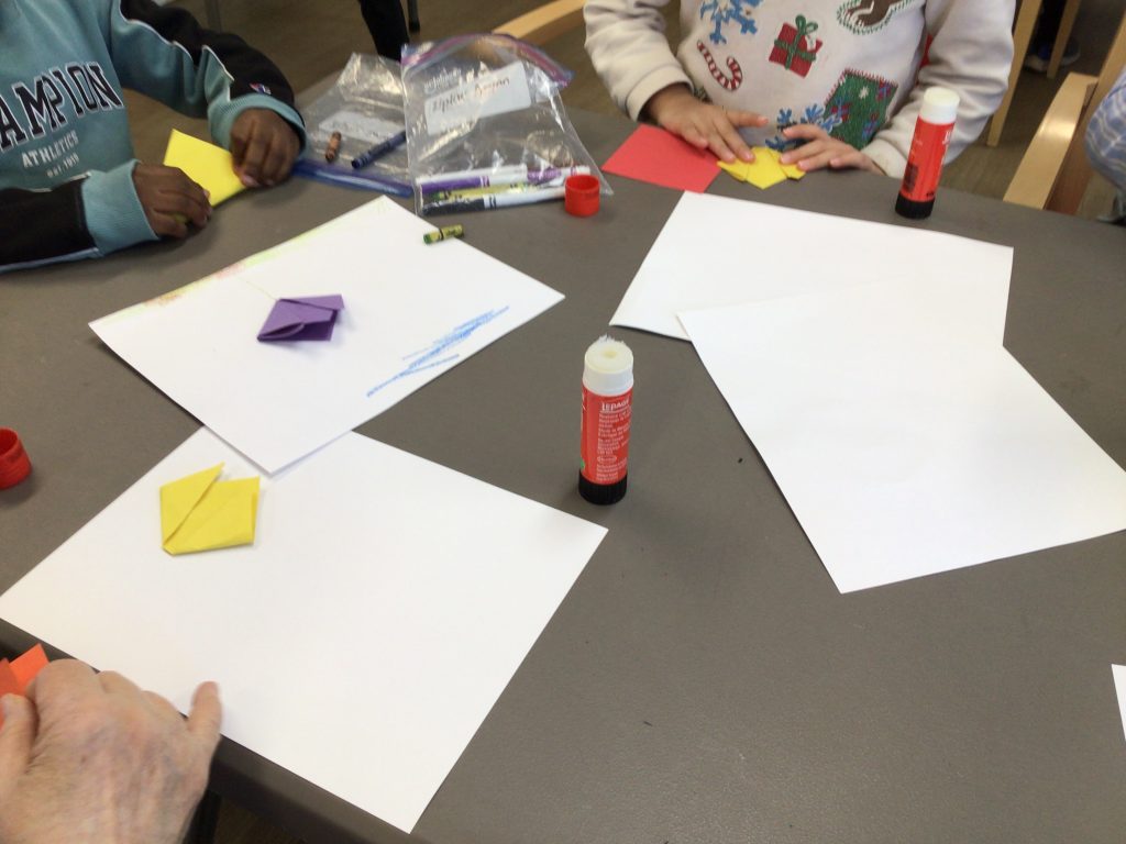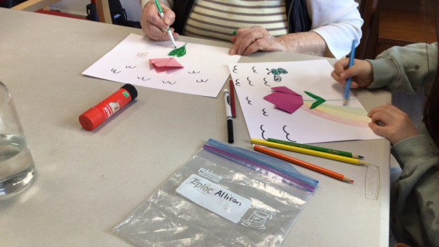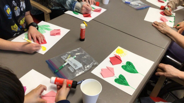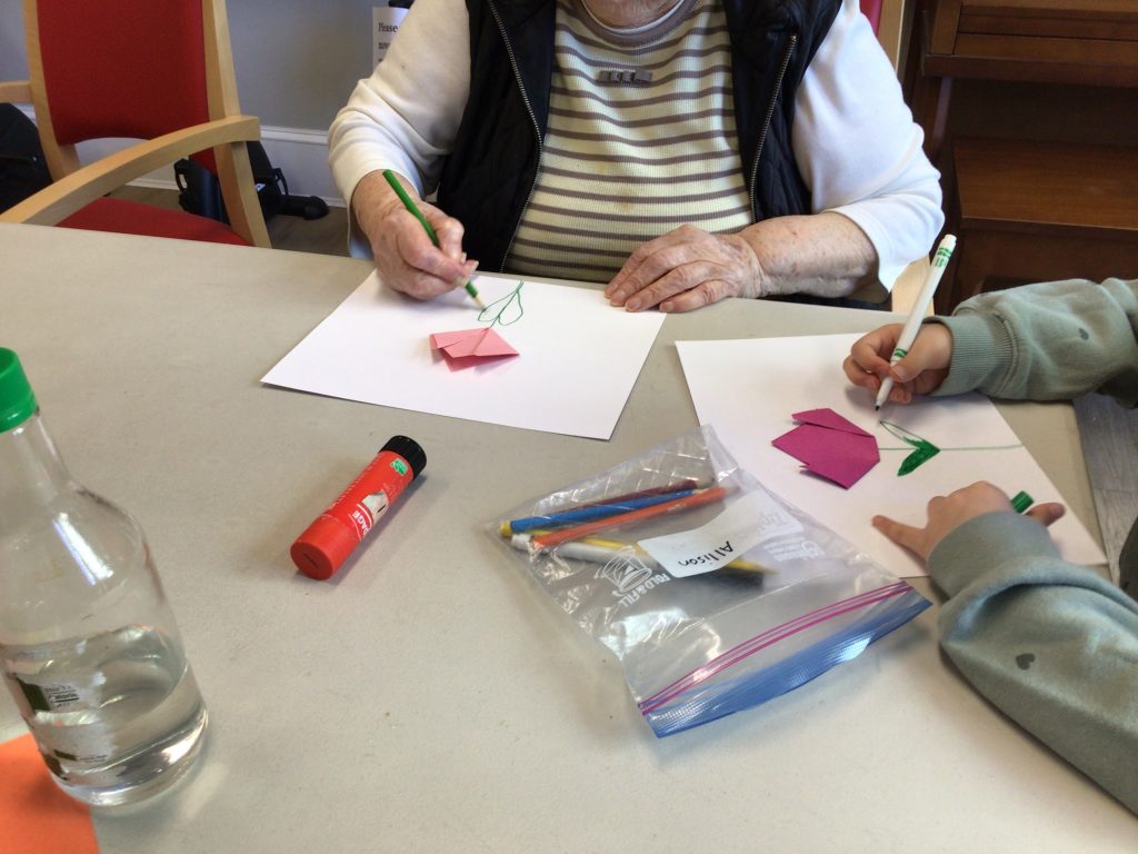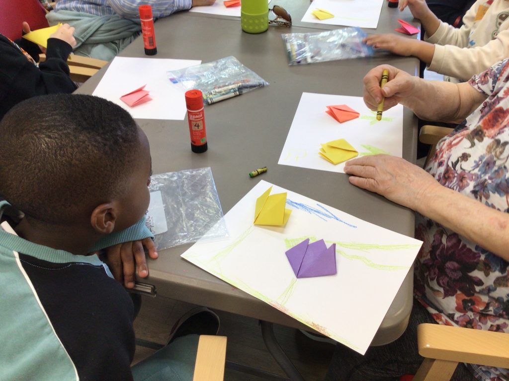 On our way to see the Grand Buddies, we saw many signs of spring. We saw blossoms on our way as well giving us lots of inspiration to make the cherry blossom art with our Grand Buddies.