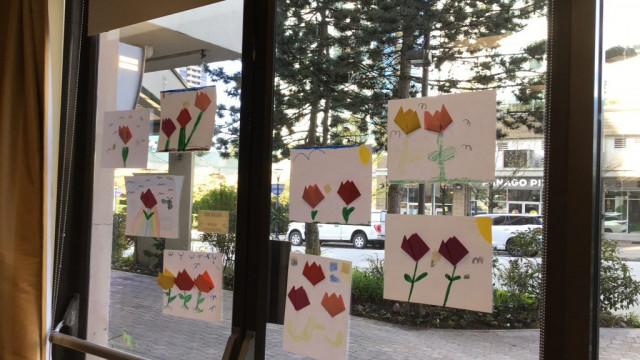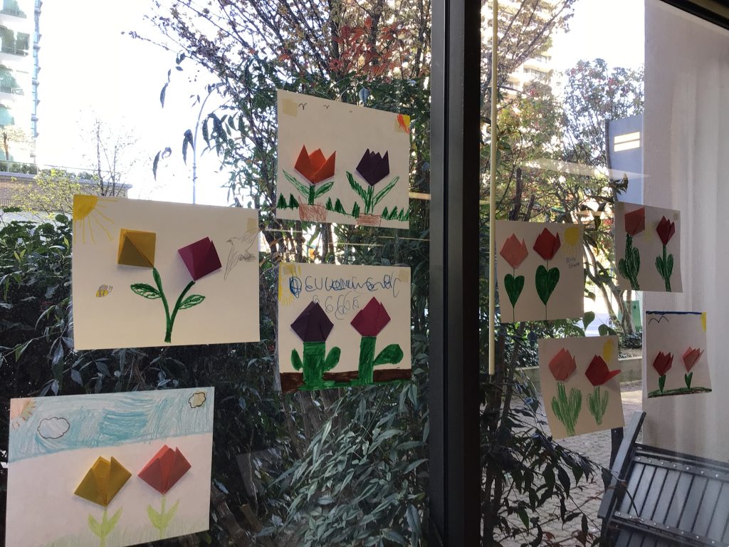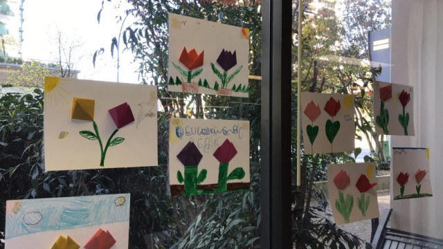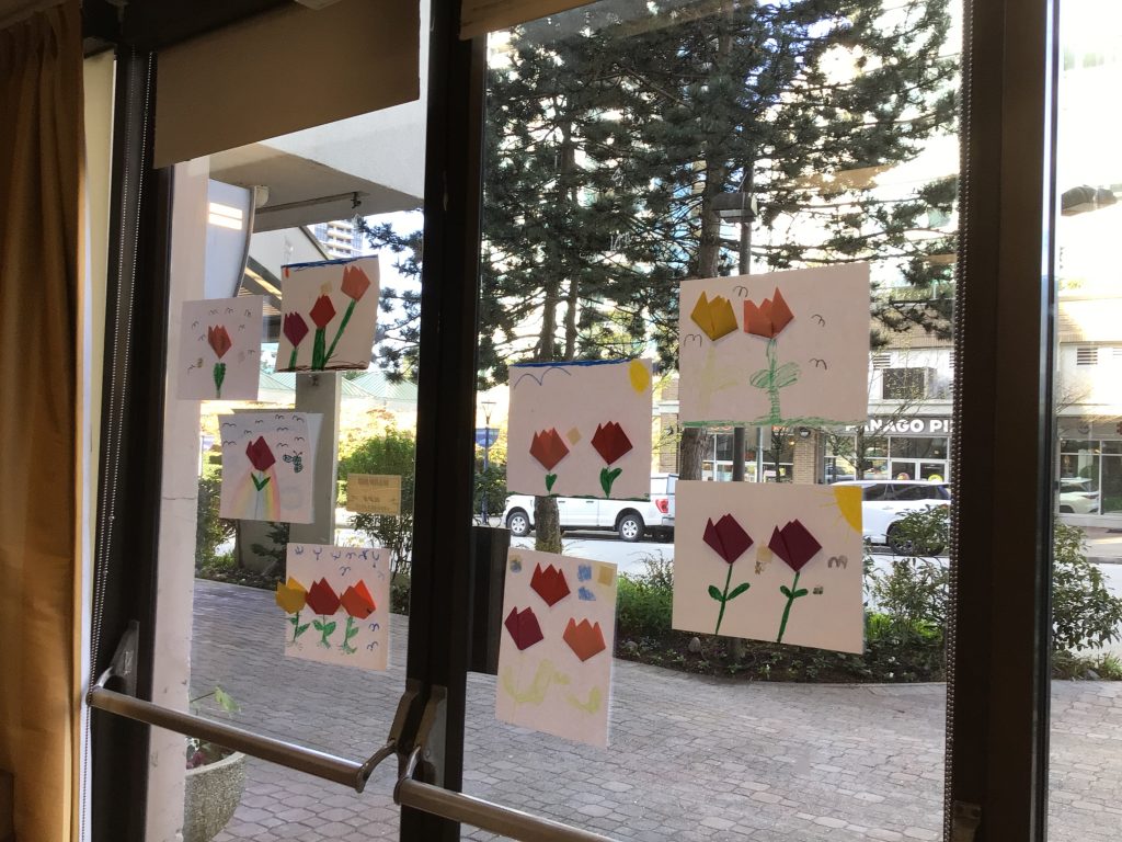 This month with our Grand Buddies, we made tulip art. We also had a beautiful for our walk to and from Rideau and we saw many signs of spring.