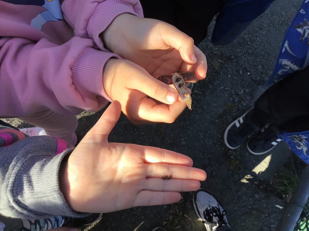 We talked about how everyone on Earth is connected. We read the book The Family of the Earth by Schim Schimmel about how all the animals on the Earth share one Earth and see things differently, but are all connected. The Earth is made up of 70% water that is connected. We read One Well by Rochelle Strauss. The book talks about how every being on the Earth uses the water from one well. When we look closely at the water, 97% of Earth’s water is ocean (and undrinkable), 2% is glacier, and 1% is drinkable. We talked about how we, living in a temperate rain forest, is lucky to be in a region with the 1% drinkable water. This is to the factor that we get rain and snow. With the climate changing, we need to be thoughtful in our water consumption and conserve and not waste this precious resource.