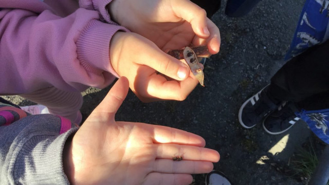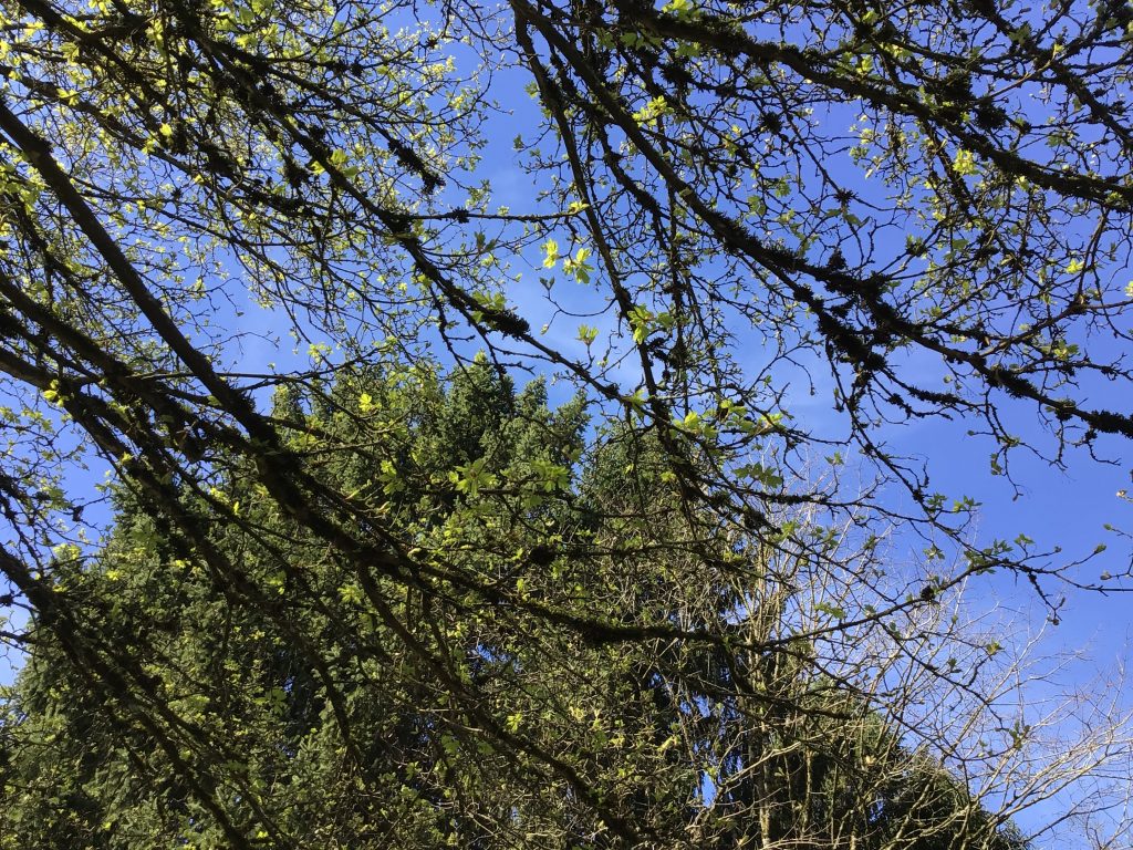 We had a beautiful day for our April monthly walk. We definitely saw signs of spring but we also took a closer look at different things such as the seed in small pods, the tiny acorns that did not grow last year, or the acorn hats with remenants of the acorn shells.