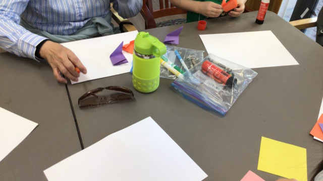 In preparation for our Grand Buddies art, we made cherry blossom art.