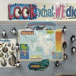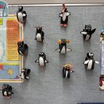 The penguin’s name is Pringle. She arrived with a journal and a copy of Mr. Popper’s Penguins, written by Florence Atwater.