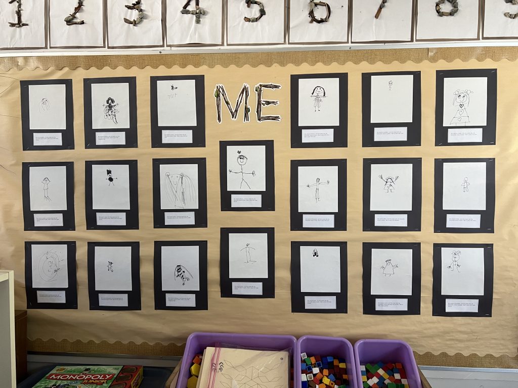 Division 16’s self portraits are displayed on our classroom bulletin board for the class and families to admire. Come check it out during our first Family Reading (October 6).