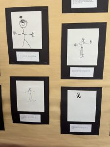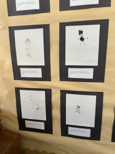 In class, the students drew themselves using a Sharpie to create a black and white self-portrait. Some fun facts about each student are included. Check out the drawings!