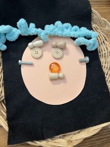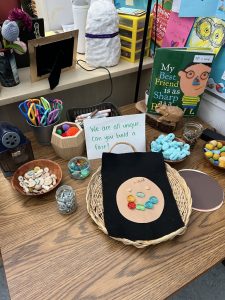 Students are asked if they can build a face with the material provided. This matches the book read to the class. “My Best Friend is as Sharp as a Pencil,” by Hanoch Piven.
